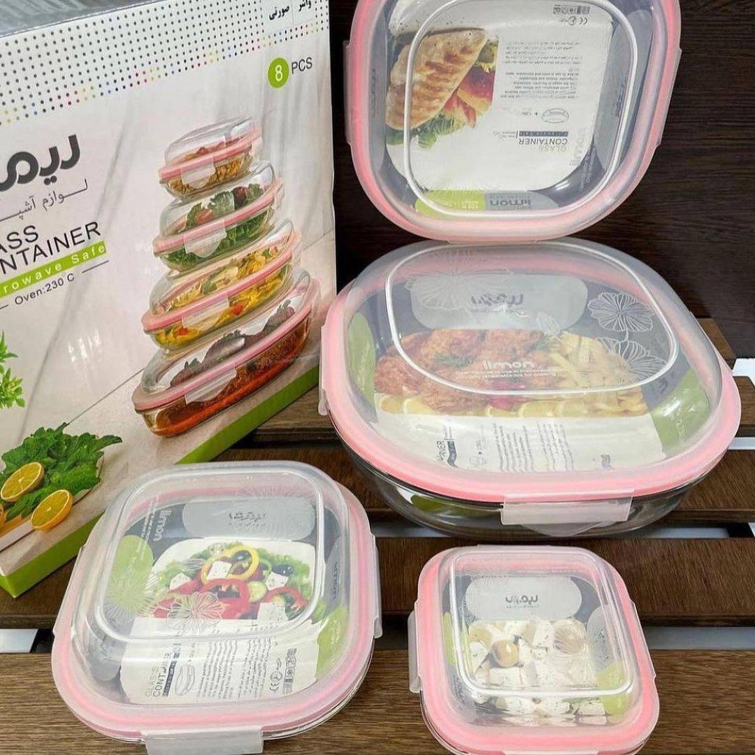 ست ظرف شیشه ای سرو و نگهداری لیمون ✅جنس شیشه بسیار شفاف و مقاوم ✅جنس واشر سیلیکون میباشد ✅ قابل استفاده در ماکروفر رنگ درب در 4 رنگ موجود میباشد : صورتی / سفید / سبزآبی / طوسی