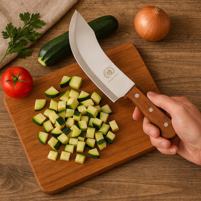 چاقو آشپزخانه مدل سرآشپز به طول کلی 31/5 سانتی متر و طول تیغه 20 سانتی متر است.دسته ساخته شده از چوب طبیعی کار کردن با این چاقو را راحت تر کرده است.چاقو آشپزخانه مدل سرآشپز یکی از بهترین انتخاب ها در میان چاقوهای آشپزخانه است.