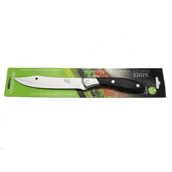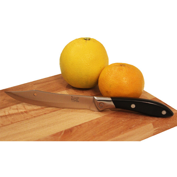 چاقو آشپزخانه بسیار تیز و برنده که دارای تیغه نازک و دسته باریک میباشد که ساعت ها آشپزی و خورد کردن را برای شما آسان میکند .فرم تیغه برای ریز کردن مواد سالاد مناسب میباشد .دارای تیغه ضد زنگ برای شستشو بهتر می باشد