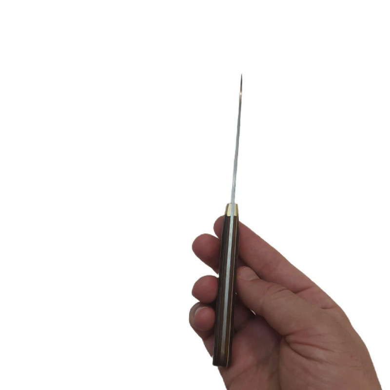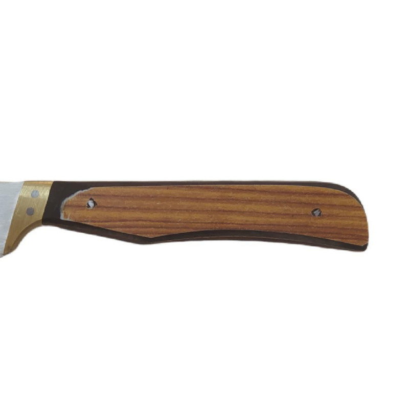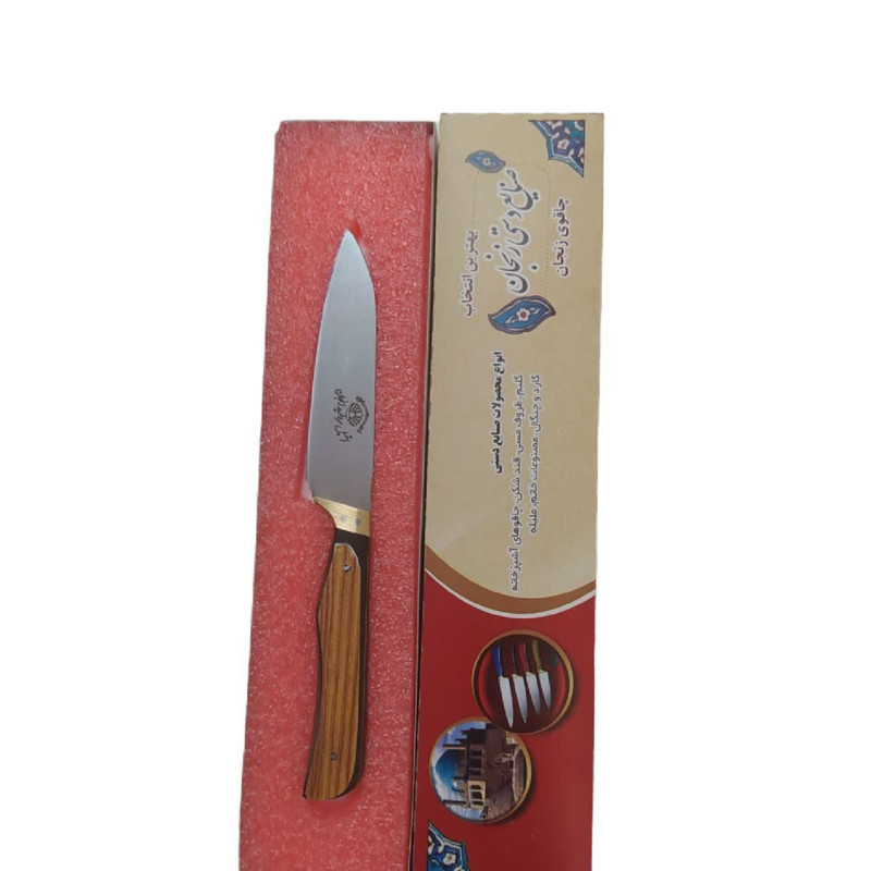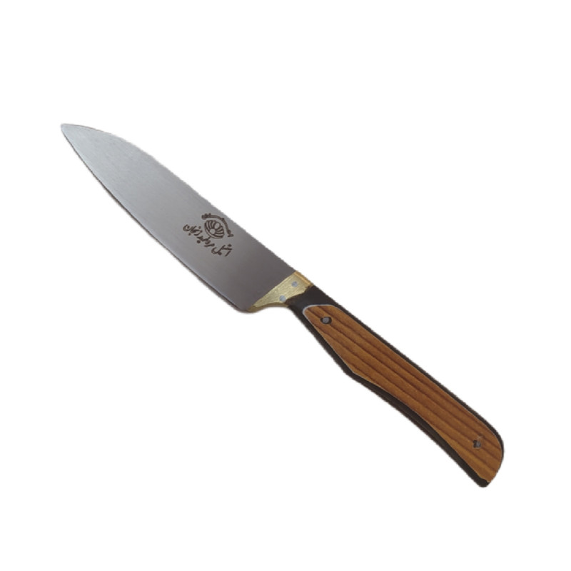 چاقو آشپزخانه از برترین صنایع دستی هنرمندان است که ی از بهترین برندها در این عرصه می باشد. چاقو سایز یک(دم دستی) با تیغه استیل فولاد ضد زنگ و دست ساز بودن، یک تیکه و دارای قابلیت تیز شدن دوباره است. جنس دسته چوب فشرده کائوچو مقاوم در برابر نفوذ آب و شکستگی ، وزن سبک و خوش دست است که دارای باربند برنجی که مانع از جدا شدن تیغه از دسته می شود که با دو عدد میخ به جهت افزایش استحکام پرچ شده است.