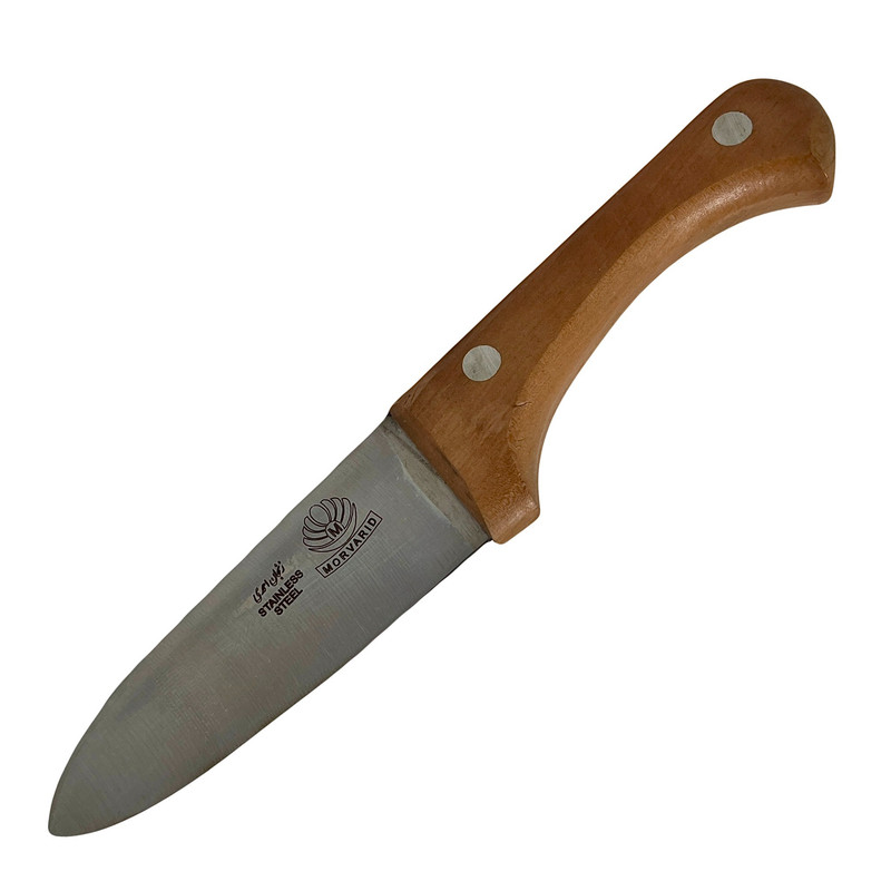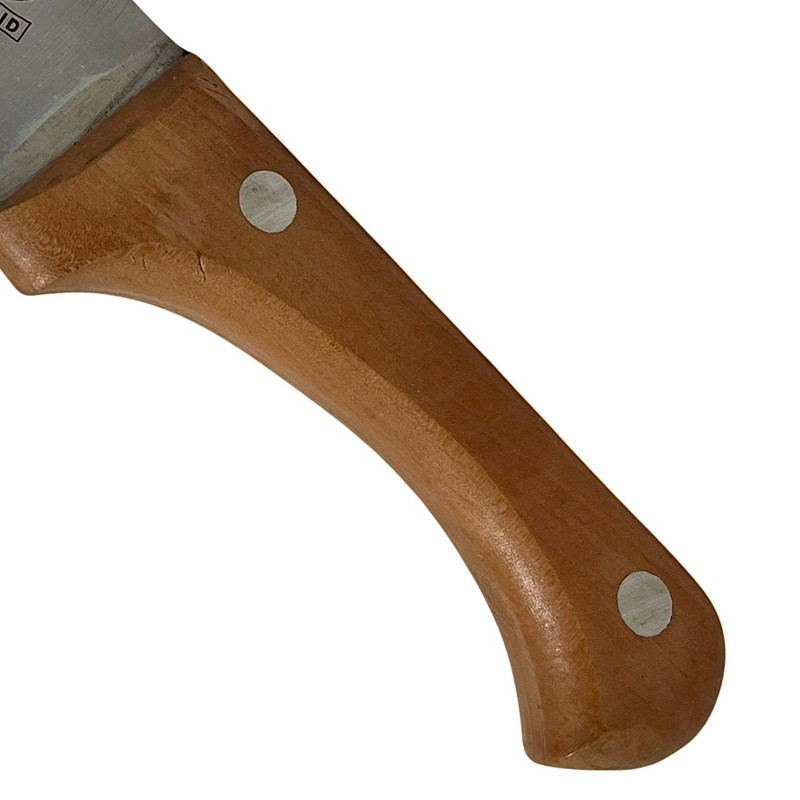 طول کلی 27 سانتیمتر ؛ طول تیغه 14 سانتیمتر ؛ طول دسته 13 سانتیمتر ؛ عرض تیغه 4.5 سانتیمتر ؛ ضخامت تیغه 3 میلیمتر جنس دسته از چوب جنس تیغه از استیل ضد زنگ می باشد.