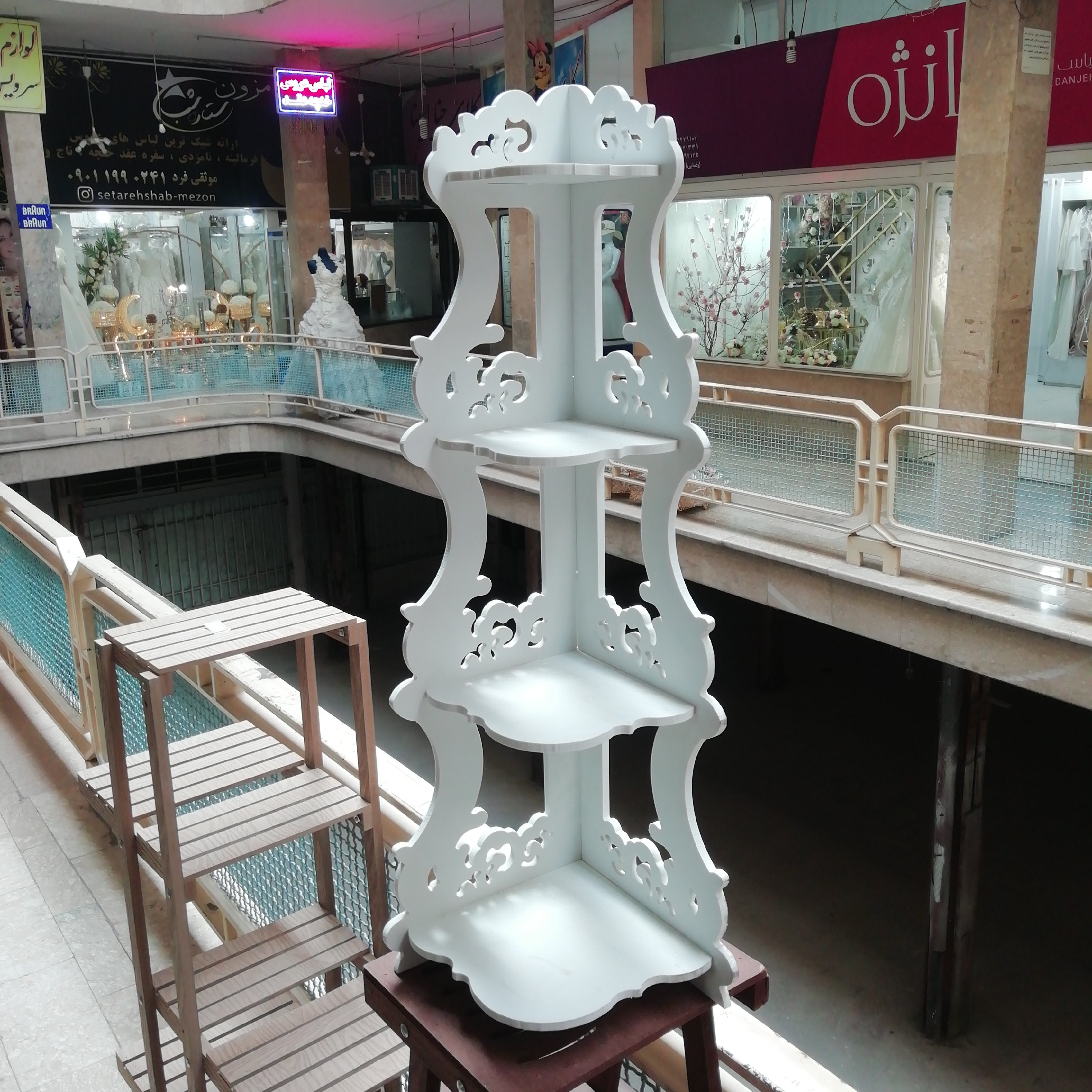 شلف کنج هرمی 4 طبقه کاربردی ضد آب.. جنس پی وی سی ضخیم ضد آب و زیبائی خانه شما