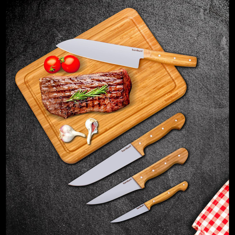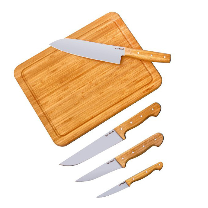 چاقو م مدل 4401 مجموعه چهار عددی به همراه تخته گوشت مبلمونسرا مدل 205628