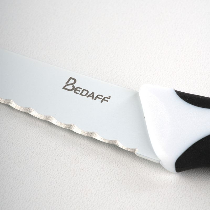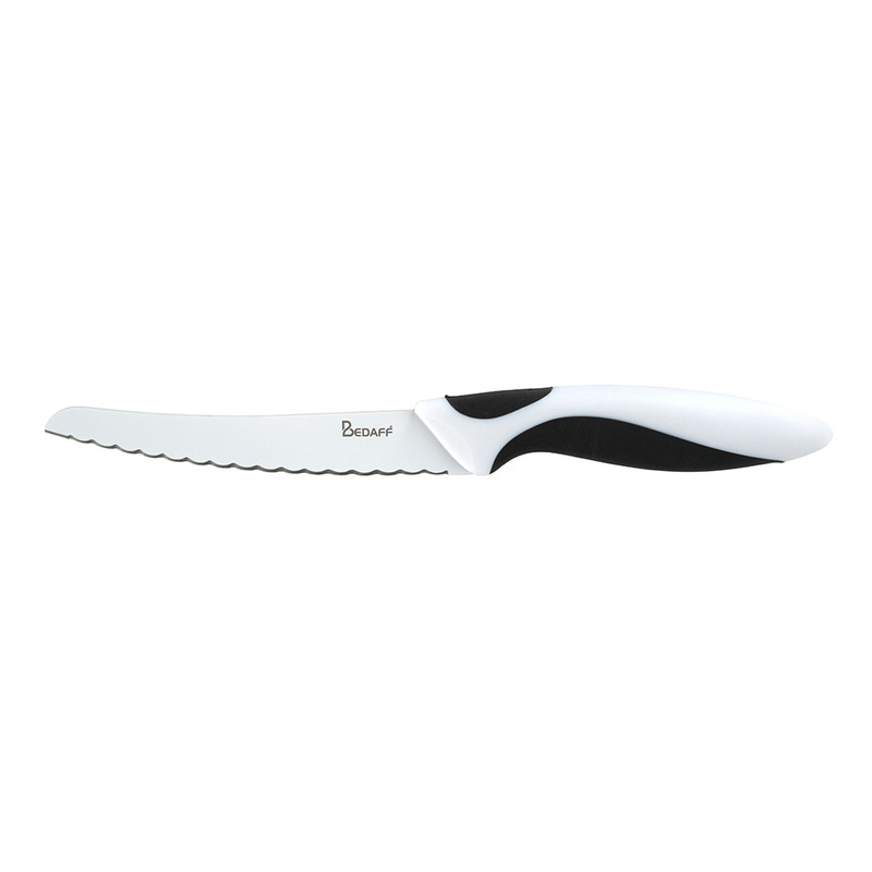 محصولات کاربردی آشپزخانه، مدل Bedaff، با اصالت فرانسوی، کاربردی و باکیفیت بوده و بعنوان کالاهای اقتصادی، جهت استفاده روزمره قابل استفاده است. این چاقوی کاربردی در طیف گستردهای از کارهای روزمره، از پوست کندن و برش دادن سبزیجات گرفته تا بریدن گوشت یا نان، عالی عمل میکند. تیغه تیز از استیل ضدزنگ ساخته شده است که در برابر لکهها و همچنین خوردگی مقاوم است، تیز بودن طولانی مدت تیغه تضمینی بوده و نگهداری آن آسان است. وجود متریال عالی، کیفیت و دوام دسته چاقو را تضمین میکند. به عبارت دیگر، این چاقوی کاربردی با طول تیغه 11.5 سانتیمتر یک دستیار عالی برای هر آشپزی محسوب میشود. ویژگیهای منحصر به فرد: متریال مرغوب اتصالی در دسته چاقو (ترکیب سیلیکون و ABS) | تیغه استیل با حفظ قدرت برش در طی زمان | طراحی نومیک جهت جلوگیری از خطر سرش در اعمال فشار | قابل شستشو در ماشین ظرفشویی: (شستشو با دست توصیه میشود) | ابعاد محصول: 2.5×23 سانتی متر | طول تیغه : 11.5 سانتی متر | ابعاد بستهبندی: 7×27 سانتی متر | وزن خالص: 46 گرم