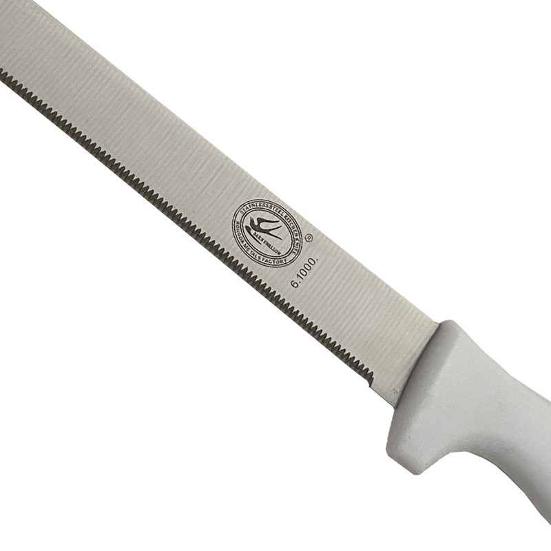 چاقو اره ای مناسب برش انواع کیک، نان و... برند BARNSWALLOW ساخت چین بوده و از کیفیت بسیار خوبی برخوردار می باشد. طول این چاقو اره ای 44 سانتی متر بوده که 14 سانت از آن شامل دسته چاقو و 30 سانت آن چاقو اره ای می باشد. جنس این چاقو استنلس استیل است.