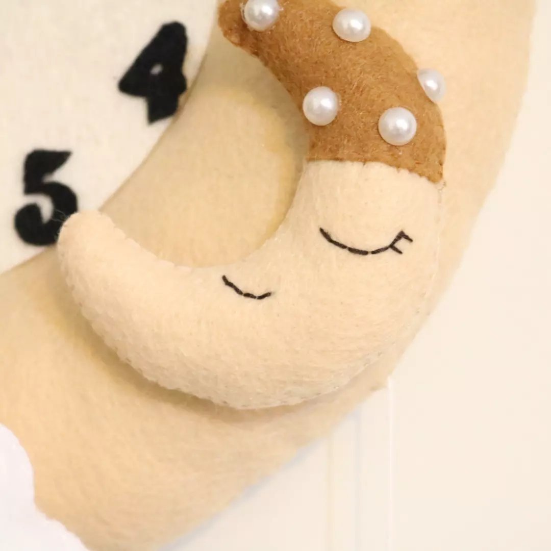 ساعت دیواری نمدی اتاق کودک رنگبندی کاملا قابل تغییر امکان تهیه ست رودری و آویز، جای دستمال و سطل کار هم وجود دارد لطفا قبل از سفارش حتما هماهنگ کنید