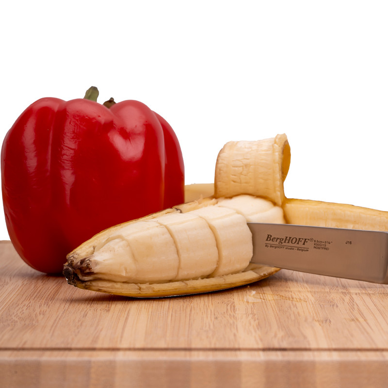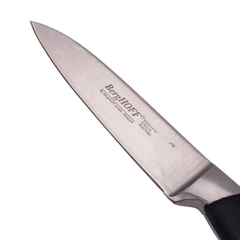 (®BergHOFF) برندی بینالمللی و نامآشنا، با اصالت بلژیکی، در زمینه تولید لوازم پختوپز و آشپزخانه غیربرقی است و با هدف ارتقای تجربه آشپزی روزمره، تولیدات گسترده و متنوعی با کیفیت گرید جهانی و استانداردهای اروپایی ارائه داده است. مقر اصلی برند ، کشور بلژیک میباشد. فع اصلی شرکت ®BergHOFF، در زمینه خلق، تولید و توسعه طراحیهای پیشرو و پیشرفته لوازم آشپزخانه است. این چاقوی کاربردی از جنس استیل ضدزنگ در طیف گستردهای از کارهای روزمره، از پوست کندن و برش دادن سبزیجات گرفته تا بریدن گوشت یا نان، عالی عمل میکند. تیغه تیز از استیل ضدزنگ ساخته شده است که در برابر لکهها و همچنین خوردگی مقاوم است، تیز بودن طولانی مدت تیغه تضمینی بوده و نگهداری آن آسان است. وجود 3 پرچ اتصالی، کیفیت و دوام دسته چاقو را تضمین میکند. به عبارت دیگر، این چاقوی کاربردی با طول 8.5 سانتیمتر یک دستیار عالی برای هر آشپزی محسوب میشود.