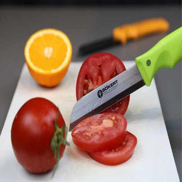 فولاد تیغه کارد ساخت کشور آلمان بوده و کیفیت بالائی داشته و قابلیت تیزشوندگی دارد. برای تمام مواد غذایی از جمله سبزیجات و پروتئین قابل استفاده میباشد.بسیار سبک و خوش دست بوده و هفت رنگ متنوع دارد.