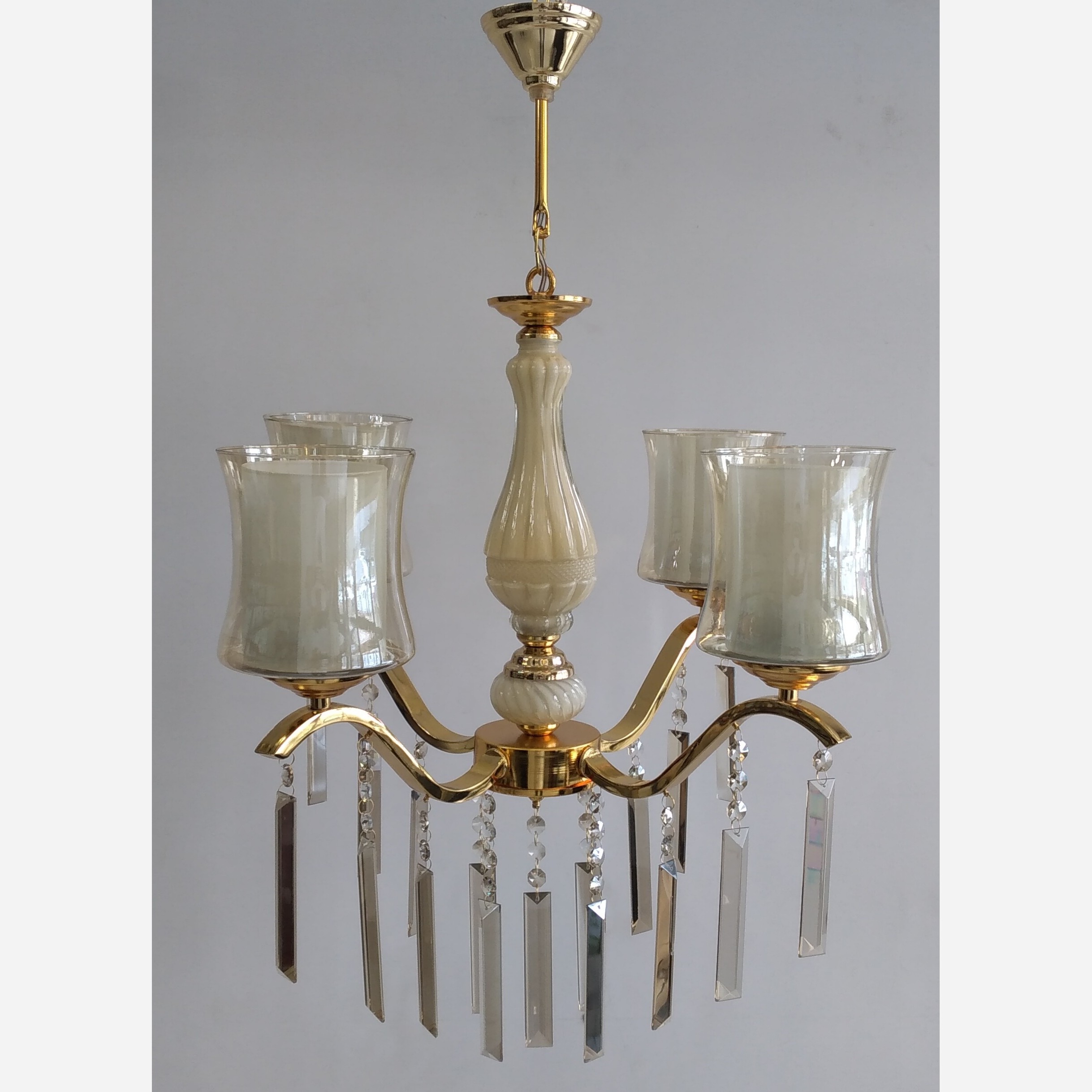 با توجه به هزینه ارسال و شکستنی بودن کالا امکان مرجوع نمیباشد لوستر 4 شاخه رنگ ثابت قابلیت نصب لامپ ال ای دی از 9وات تا 20 وات نوردهی بالا