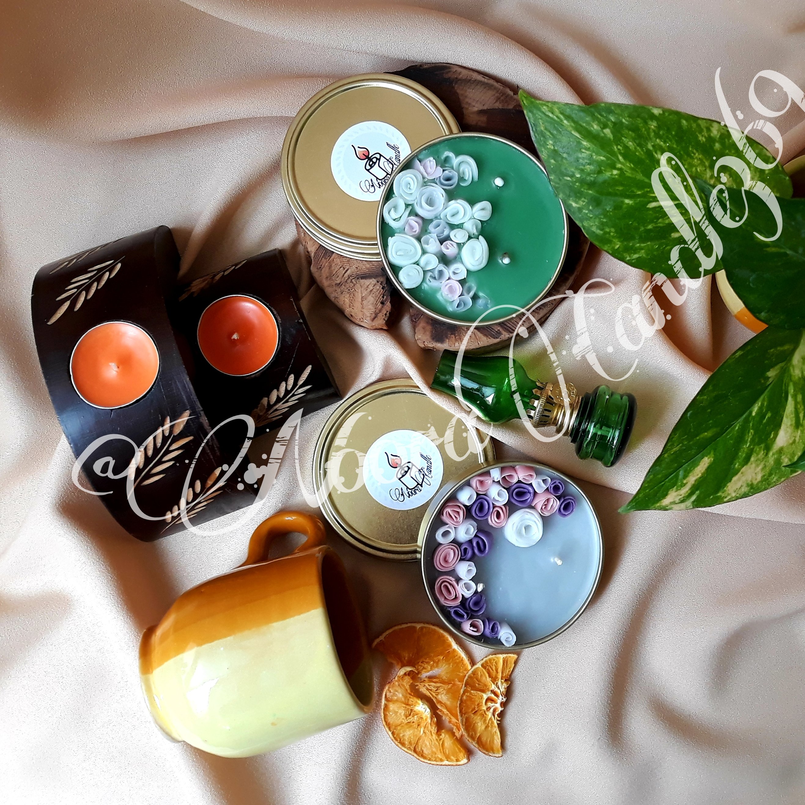 شمع قوطی با گل دستساز مبلمونسرا مدل 286503