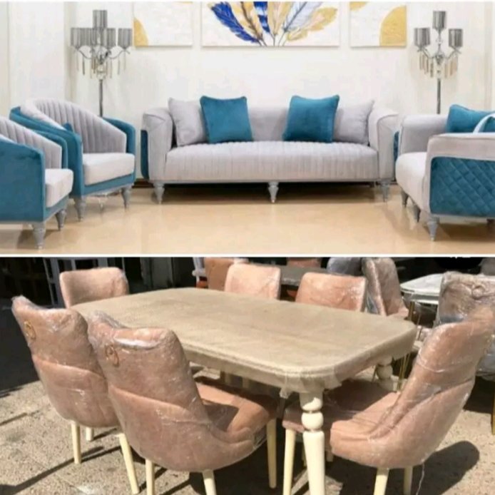 مبل ۷نفره وناهارخوری ۶نفره لاکچری دوتیکه چسترمدرن باچوب روس نشیمن اسفنج ۳۰کیلویی ویژه پاسنگ خراطی پارچه ضدلک وقابل شستشو مسکو رنگ بندی انتخاب مشتری مناسب عروس خانومای گل ارسال به سراسر ایران باباربری مطمعن وارزان هزینه ی باربامشتری