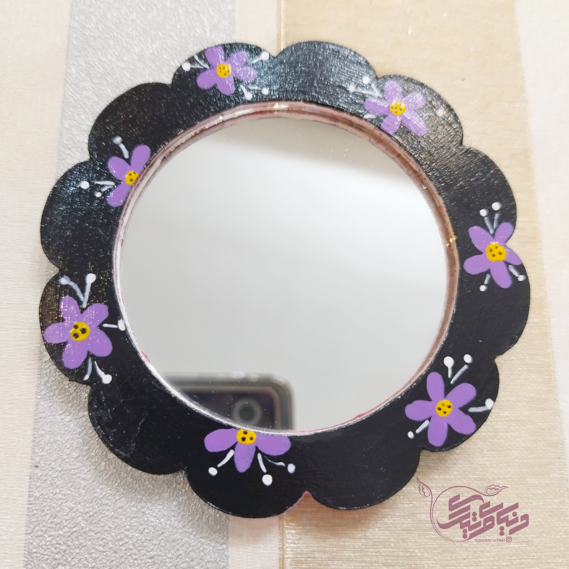 آینه جیبی چوبی، آینه کیفی، آینه نقاشی شده، هدیه دخترانه، کادو، تولد مبلمونسرا مدل 264433