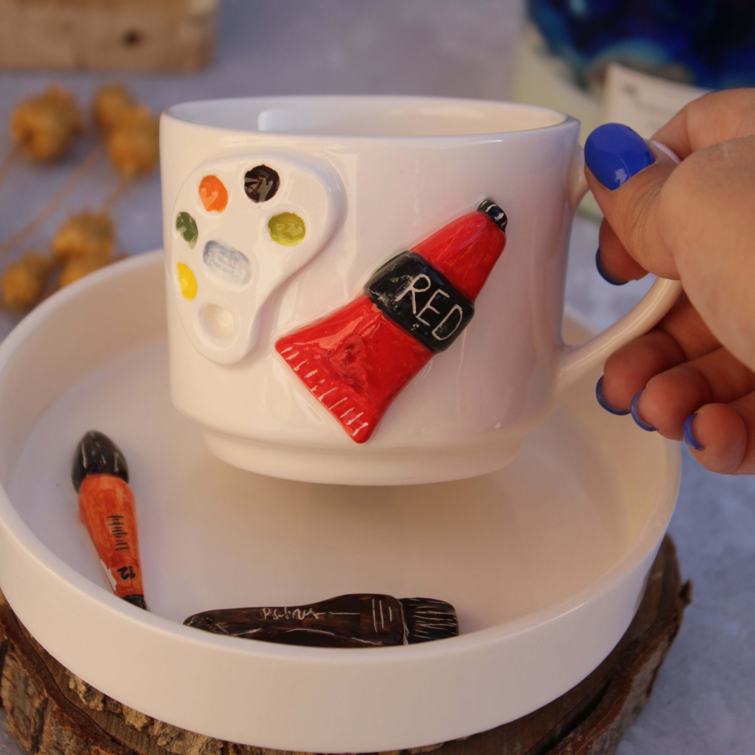 ست فنجون سرامیکی طرح نقاش مبلمونسرا مدل 278983