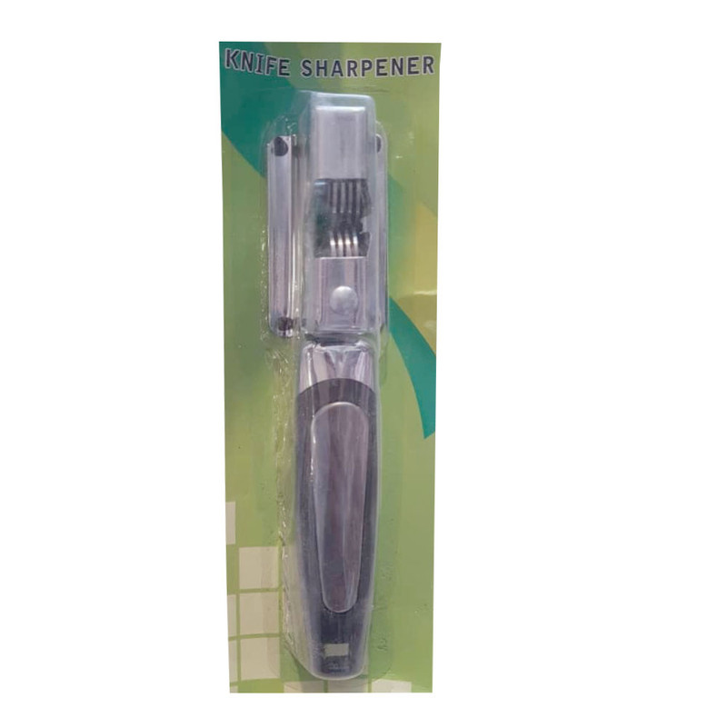 جنس دسته از استیل بوده و با پوشش پلاستیکی اطراف آن و نگهدارنده های روی سطح میتوان کار تیز کردن چاقو را به راحتی تمام انجام داد دارای تیغه های تیز کن ضد زنگ بوده و به همین ل دوام و ماندگاری بالایی دارد