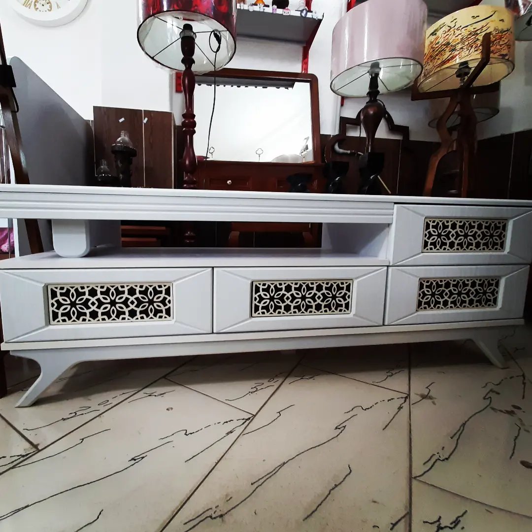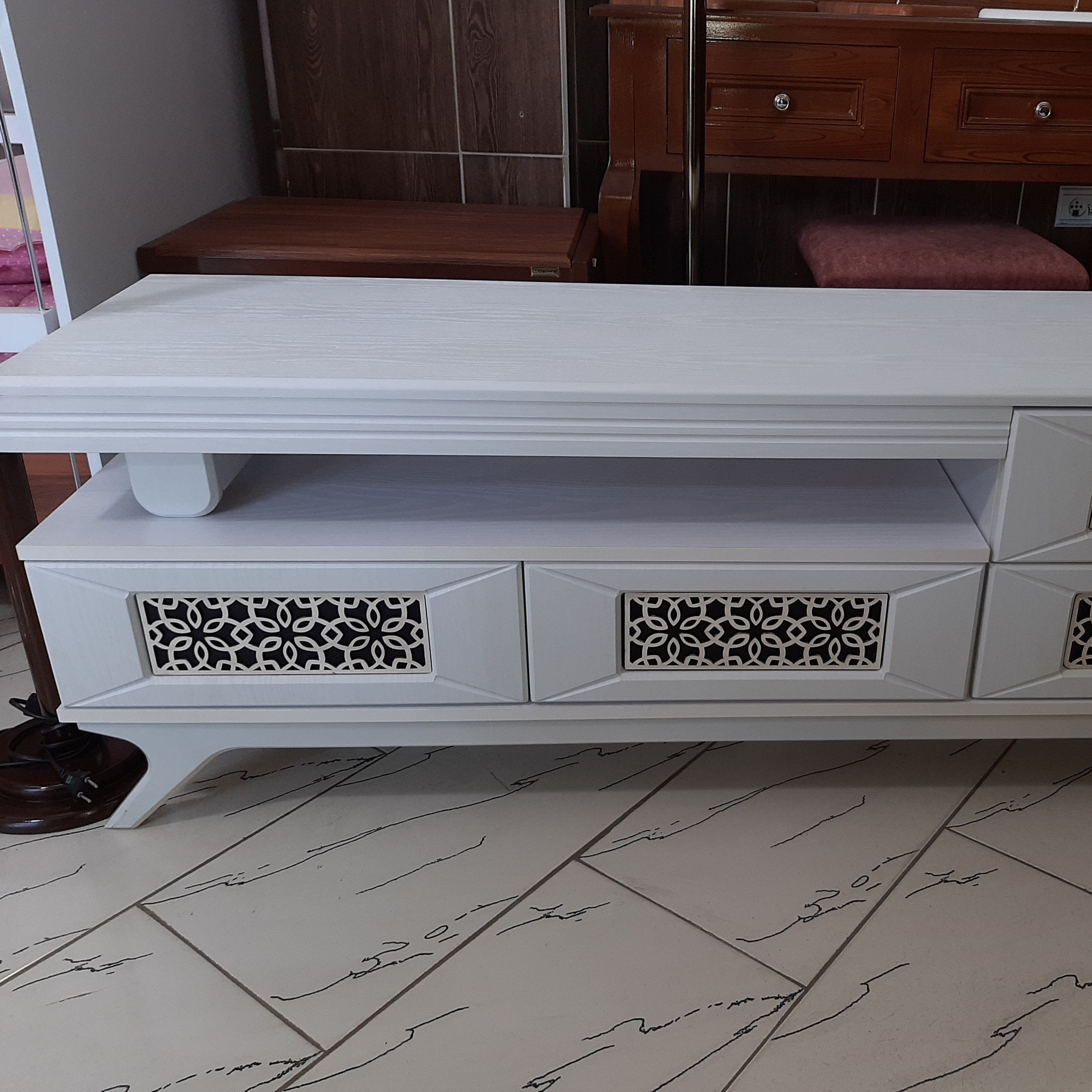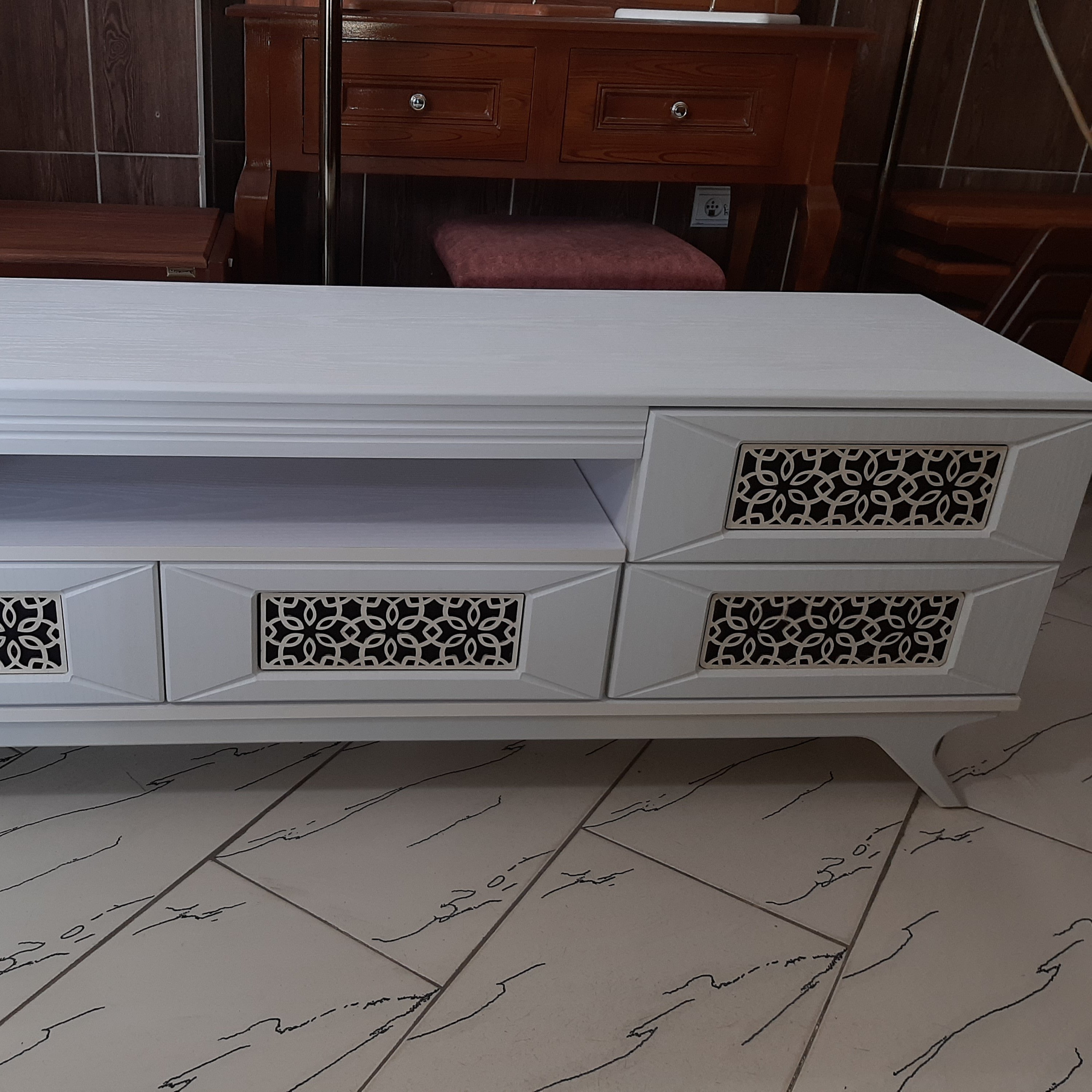 میز تلویزیون تمام وکیوم رنگ سفید دارای چهار کشو ، ضد آب و ضد خش ، دارای بسته بندی شرکتی، ازاین مدل میز tv ست کامل میز جلو مبلی و عسلی هم موجود میباشد