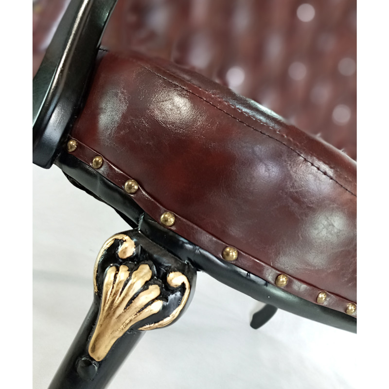 نکته: رنگ فریم چوبی این محصول در رنگبندیهای مختلف چرم یکسان بوده رنگ چوب مشکی با سرگل های ورق طلا است. یکی از شیکترین مبل اداری موجود در شرکت مبل عصایی نام دارد.این مبل بخاطر ظاهر ظریف و هارمونی خاص خود باعث زیاب شدن محیط اطراف خود شده و مناسب برای سخت پسندان است. کلاف یا فریم این مبل از چوب راش تهیه شده که عین ظرافت دارای محکمی و مفاومت بالا در برابر فشار و ضربه است. چوب این کار با پاشش 3 لایه رنگ(بتونه/رنگ اصلی/پولیستر) باعث زیبایی و مقاومت بالای گلاف شده است.ذز پشتی از اسفنج باکیفیت 17کیلویی استفاده شده و در نشیمن از اسفنج باکیفیت 30 کیلویی برای تحمل فشار زیاد استفاده شده است.زیر اسفنج از مواد پولیورتان استفاده شده تا طول عمر محصول بین 4تا6سال شود. این محصول علاوه بر رنگ چوب دارای سر گلهای منبطی با روکش طلایی است که زیبایی کار را دوچندان کرده است.روکش این مبل از چرم کریستال بوده که جنس آن pu با مقومت بالا در برابر ضربه و ناخن کشیدنو.. است. این چرم در برابر نشست و برخواست ساییده نشده و در استفاده بلند مدت به اصطلاح پوست پوست نمیشود.این چرم در سرما و گرما شدن مبل ترک نمیخورد و نیاز به مراقبت خاصی ندارد. در مجموع این مبل جزو بهترین محصولات شرکت بوده که با نام در دیجیکالا به مشتریان عزیز ارائه می شود.