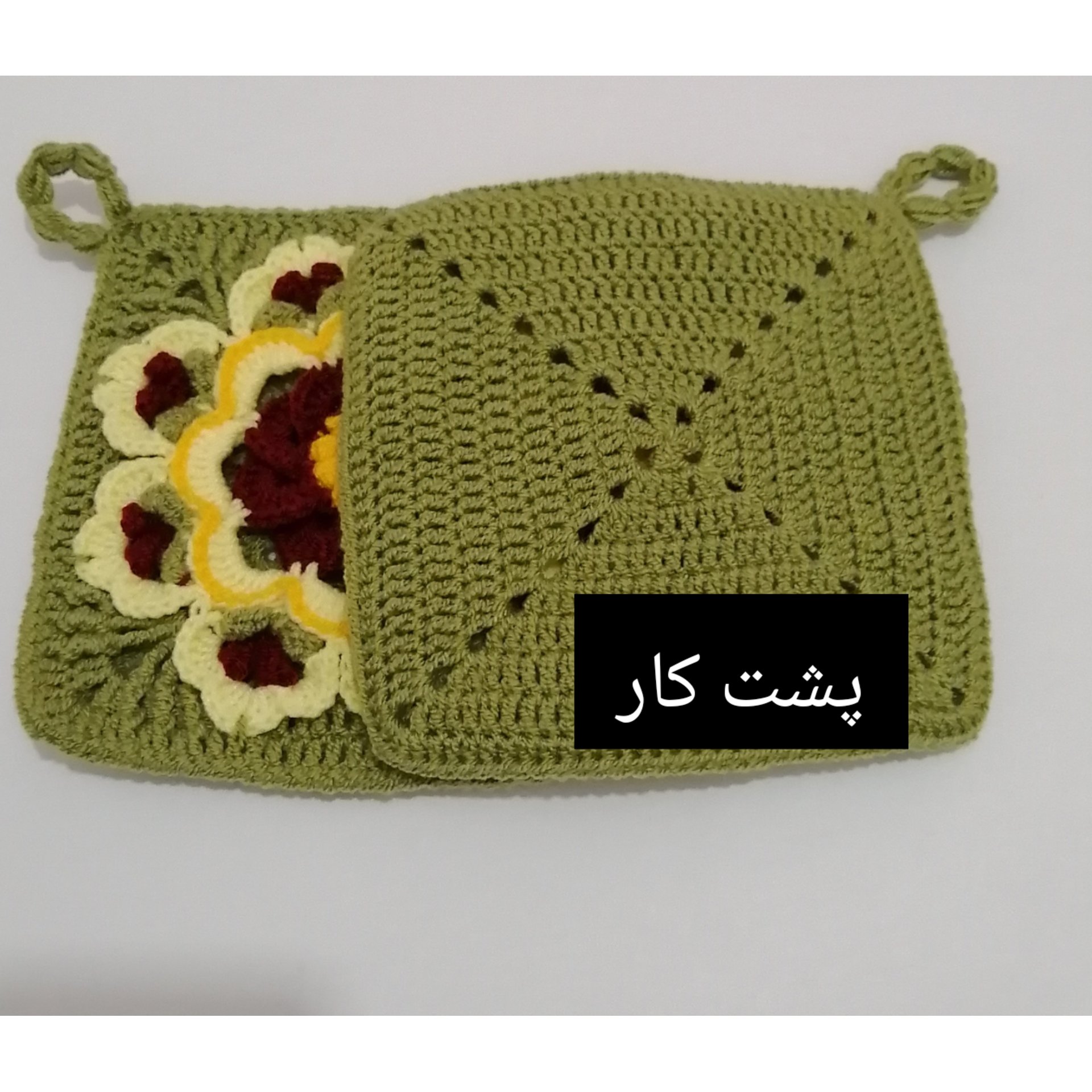 این دستگیره زیبا با قلاب و کاموای آکریل تاب ایرانی بافته شده و شما عزیزان میتوانید آشپزخانه خود را با این دستگیره خاص شکیل تر کنید، مخصوصا نوعروسان عزیز جایی تو وسایل آشپزخانه تون براش باز کنید🥰😍🌺