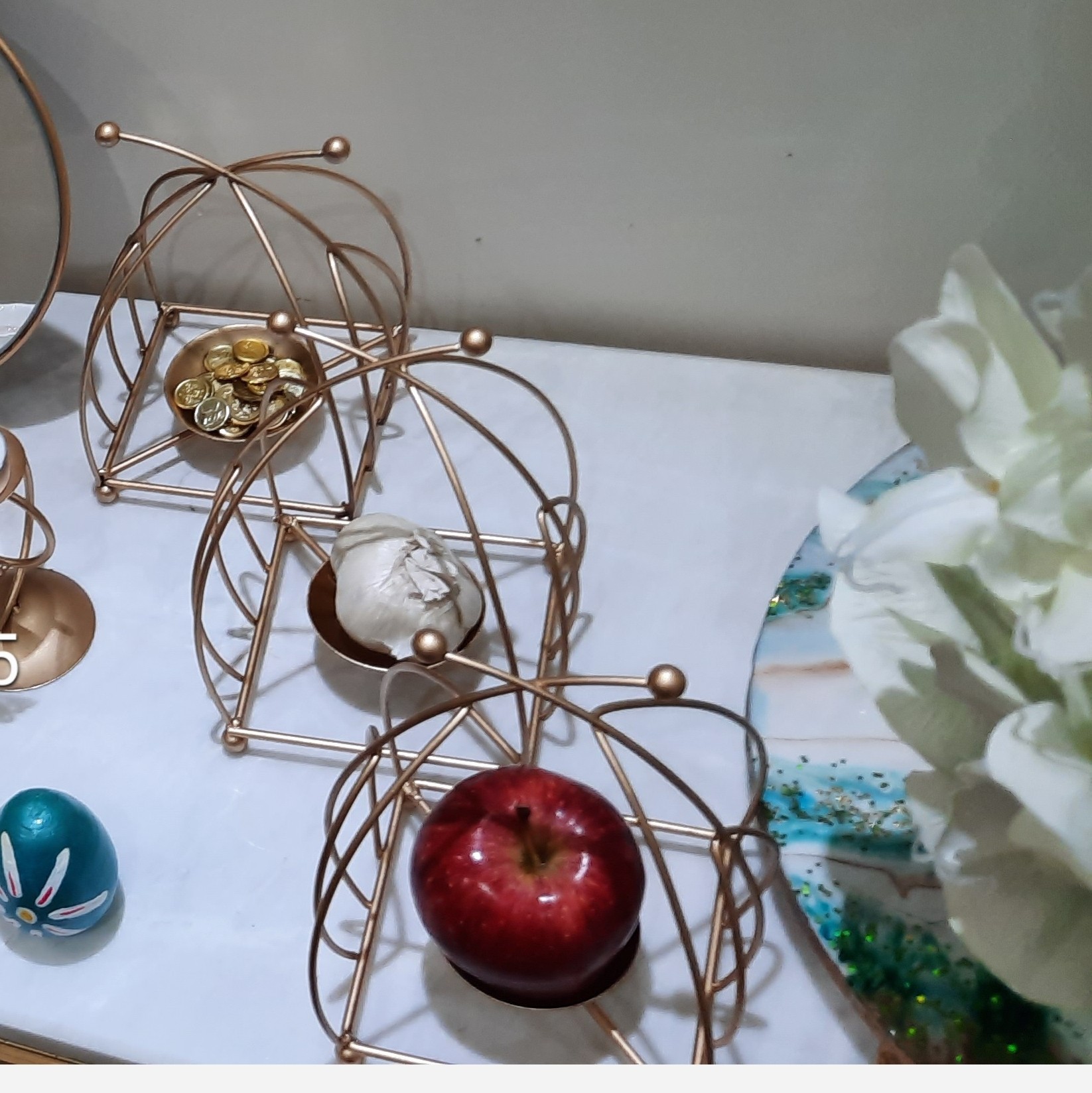 هفتسین طرح تاج برنددنیز هفسین 9 تکه رنگ طلایی مات هفت سین با آینه و2جاشمعی طرح پروانه رنگ الکترواستاتیک جنس تضمینی درجه1 مبلمونسرا مدل 258206