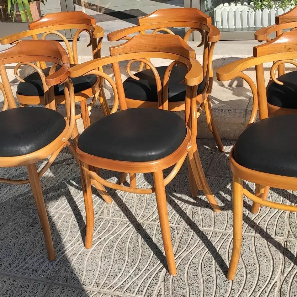 صندلی دسته دار لهستانی ساخته شده از چوب گردو قطعات بصورت خمکاری اتصالات بصورت پیچ و مهره دارای ضمانت