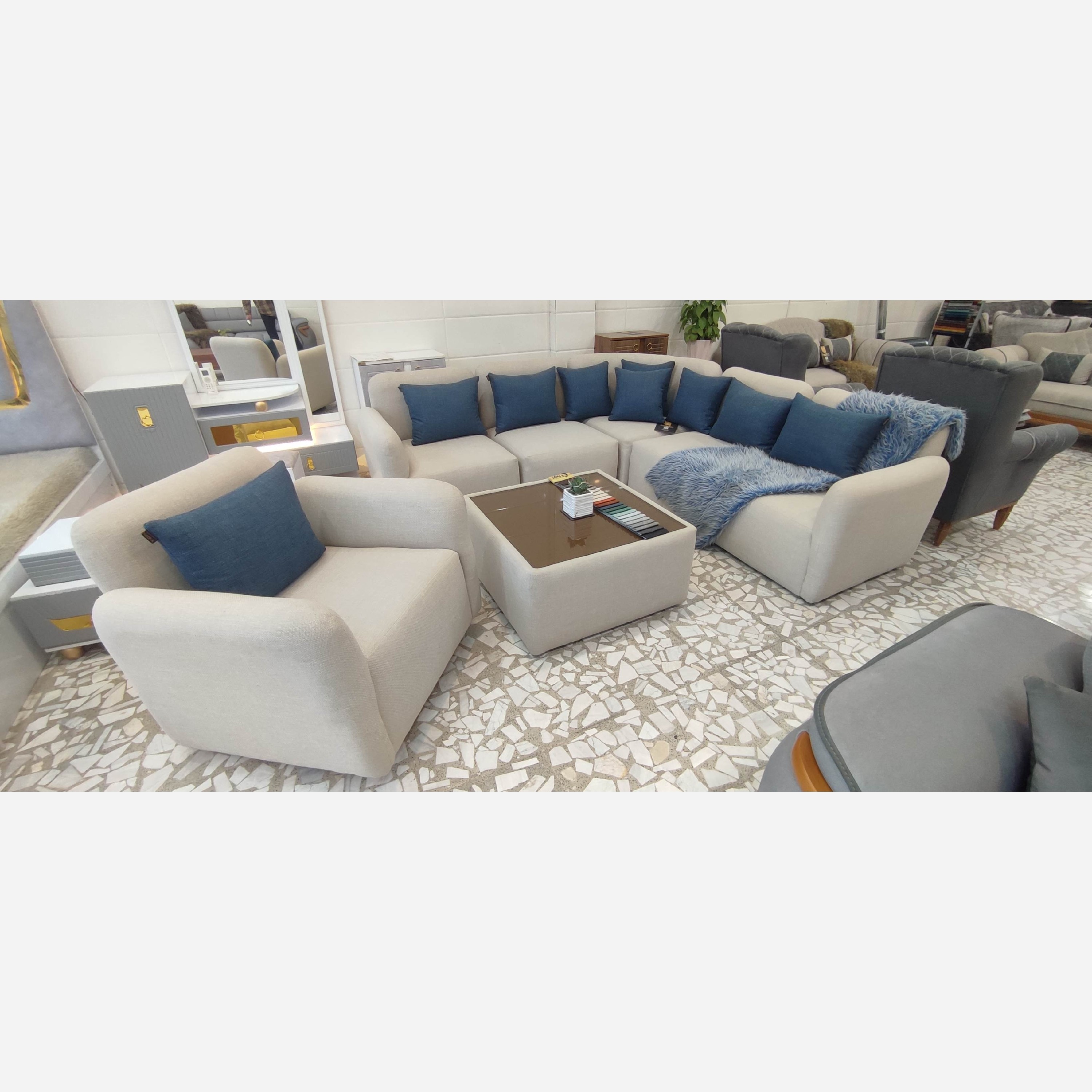 مبل ال مدل پازلی بهمراه تک نفره گردان مبلمونسرا مدل 214320