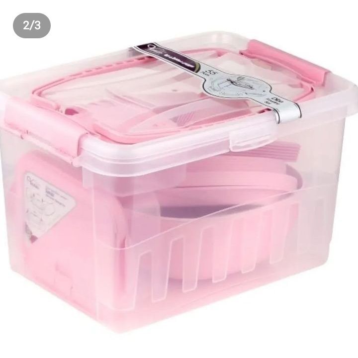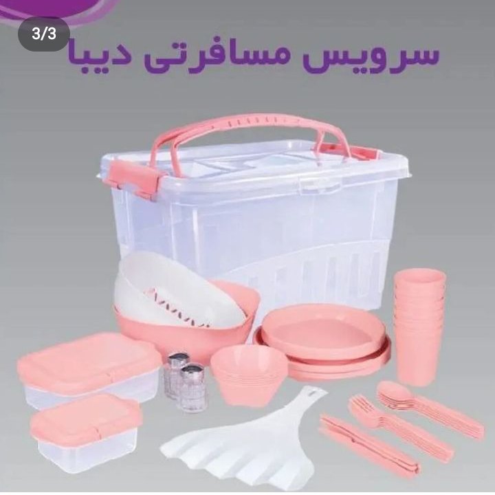 سبد مسافرتی ۵۵ پارچه در دو رنگ طوسی و صورتی کیفیت عالی عکس تعداد اجناس در عکس دوم قابل مشاهده است