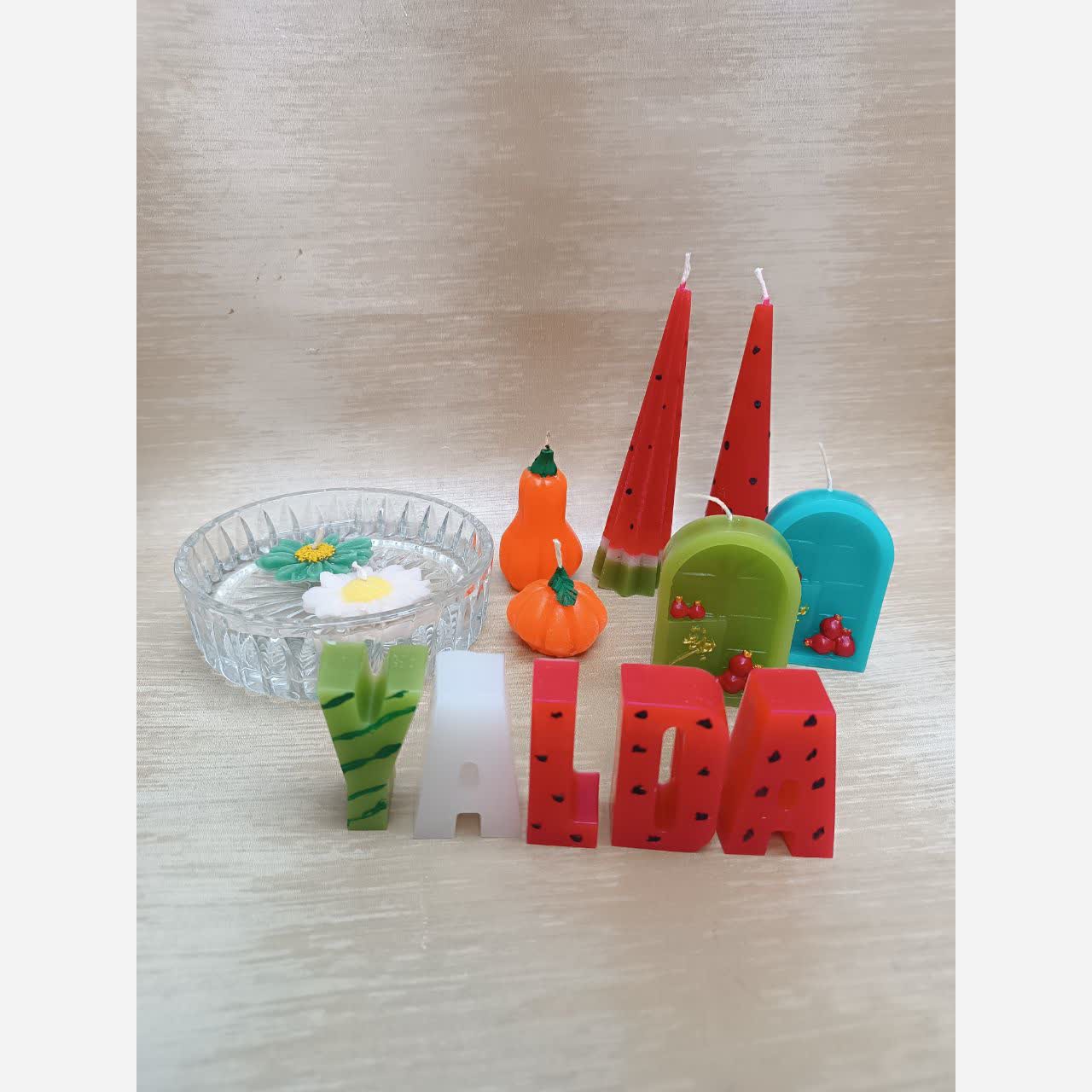 شمع گل یلدا ،شمع انار ،شمع هندوانه رنگارنگ مبلمونسرا مدل 284177
