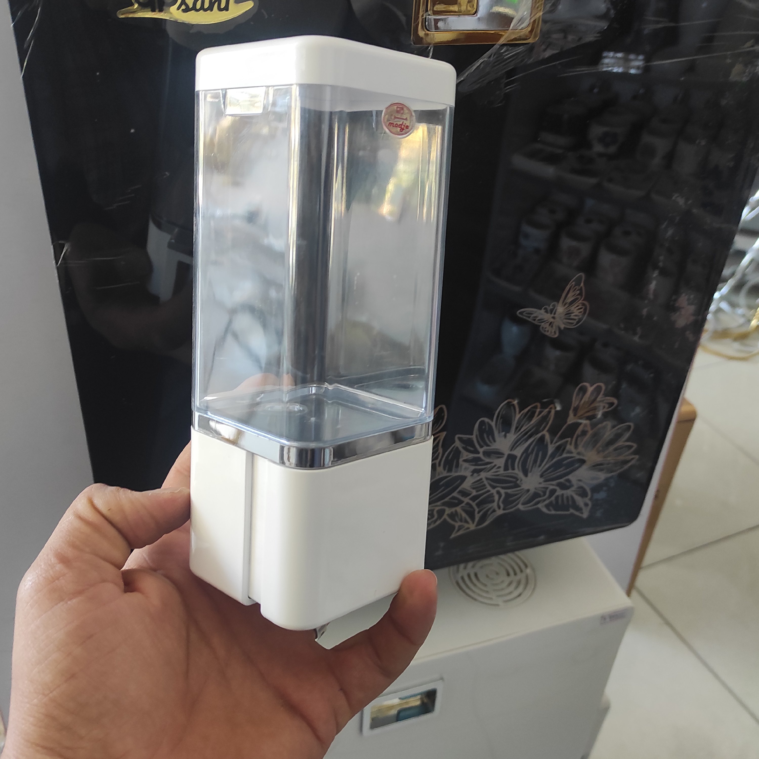 یکی دیگر از محصولات گروه صنعتی موج جا مایع تترا است که قابلیت نصب در مکان های عمومی و منازل را دارد . این جا مایع دارای یک شیشه مخزن از جنس اکرولیک و درپوش کروم و همچنین دارای پمپ قابل تعویض در 6 رنگ مختلف و متنوع است