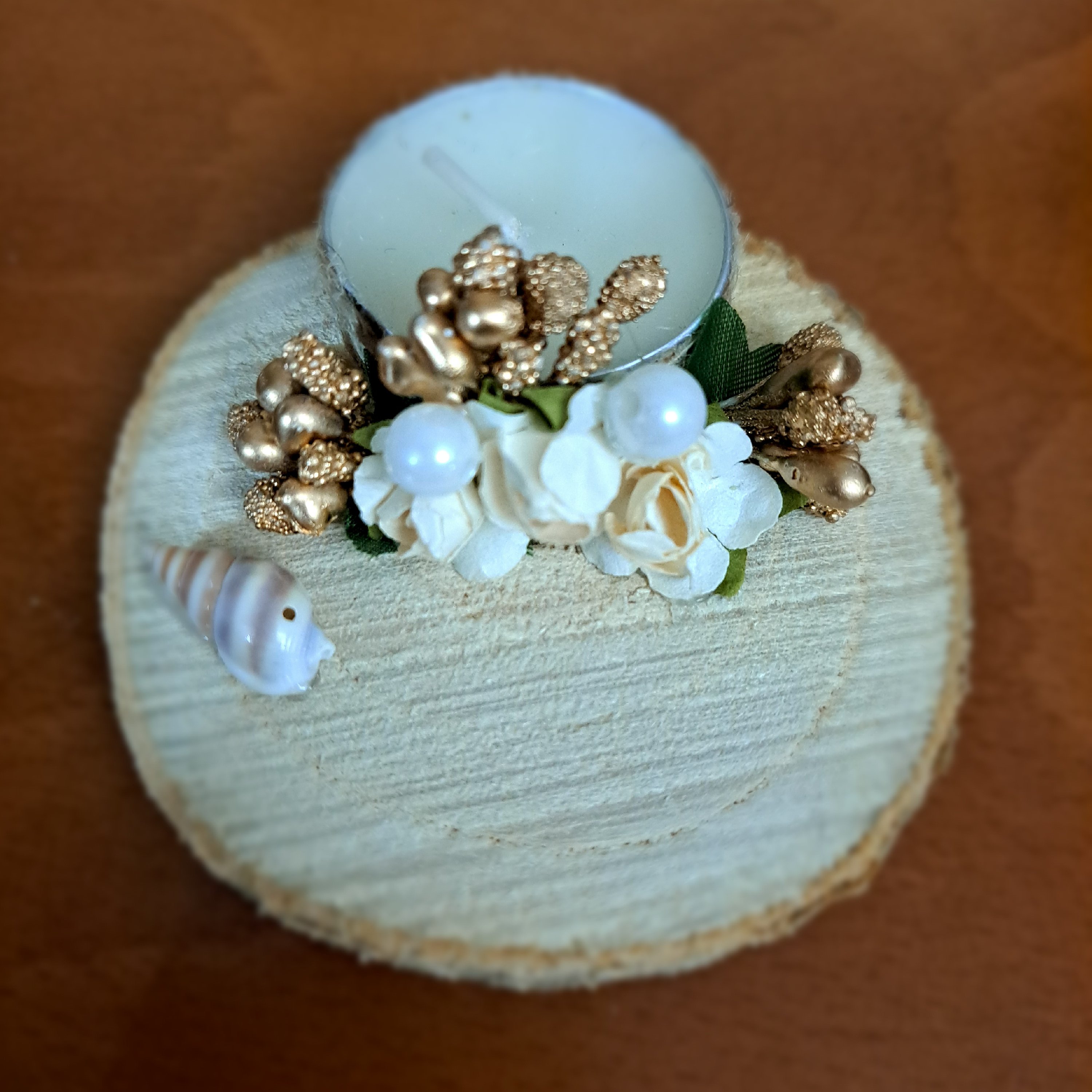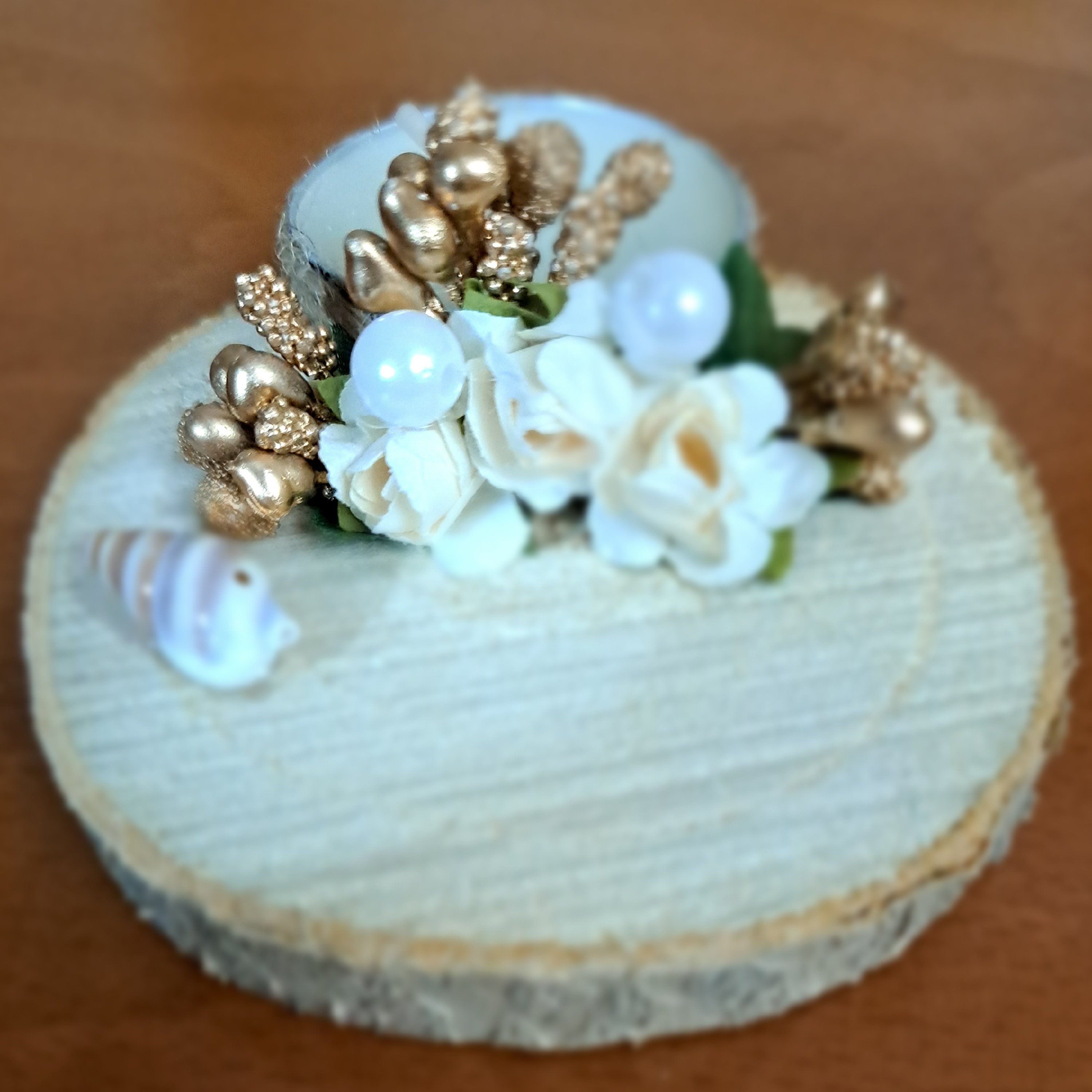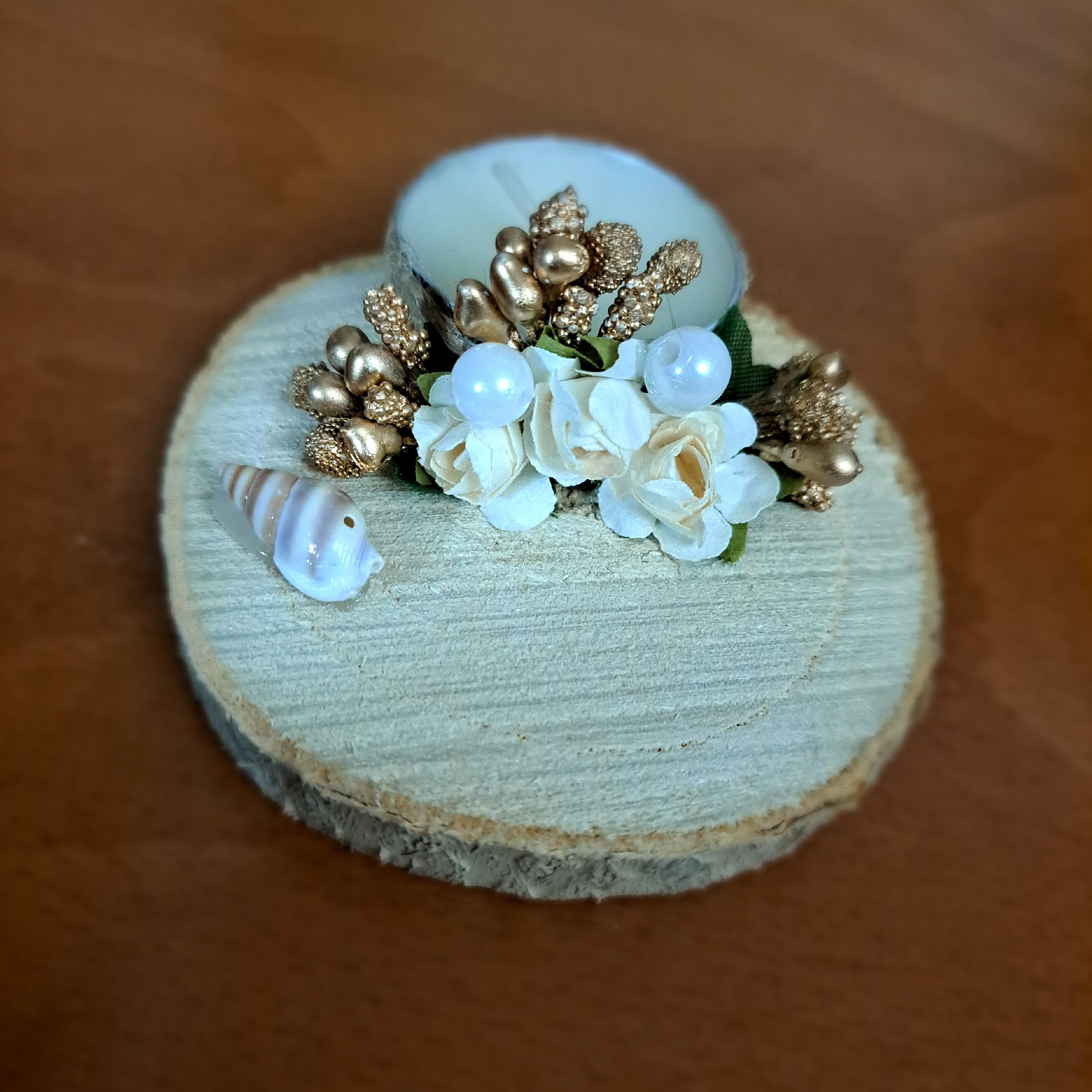 گیفت عقدو عروسی چوبی با شمع و گل سفید و نقره ای مبلمونسرا مدل 283513