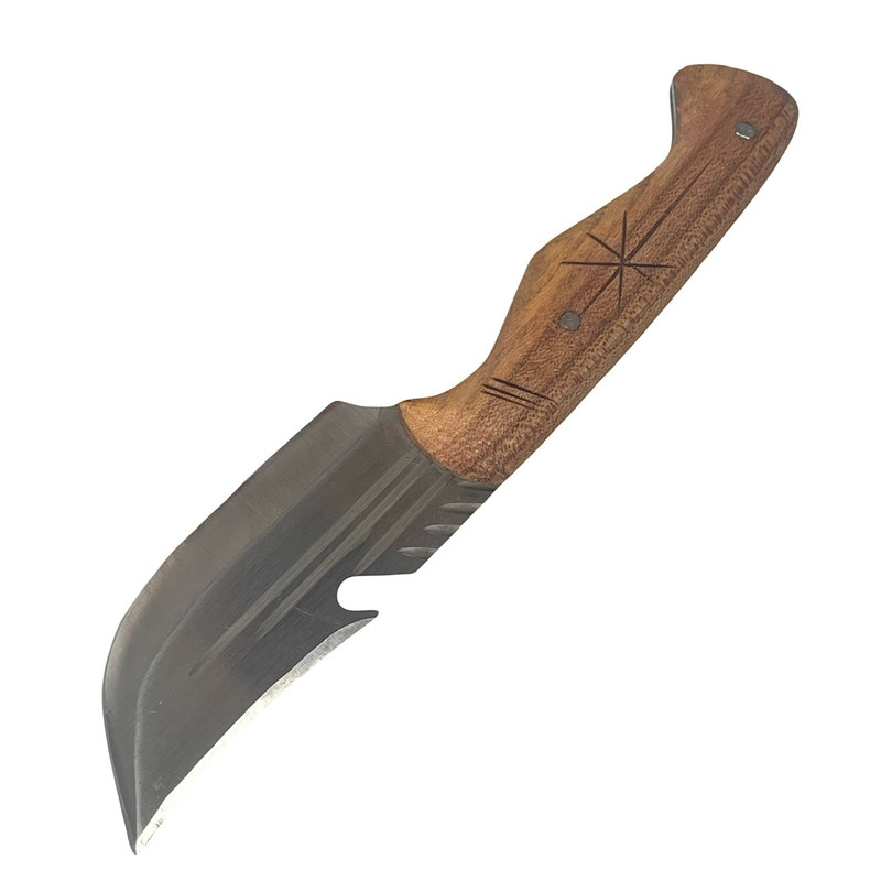 طول کلی 20 سانتیمتر؛ طول تیغه 10 سانتیمتر؛ طول دسته 10 سانتیمتر؛ عرض تیغه 4 سانتیمتر؛ وزن ۴۰ گرم ؛ جنس تیغه از استیل و جنس دسته از چوب جنگلی می باشد برای تیز کردن حتما از مصقل استفاده شود.
