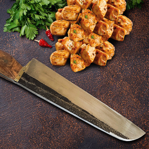 کارد جوجه زن مناسب برای منزل و وران ها و کبابی ها و قصابی ها و مغازه های پروتئینی می باشد و جنس محصول فولادی می باشد طول کل: 43 سانتی متر و پهنای تیغه: 5.5 سانتی متر و ضخامت: 5 میلی متر می باشد وزن تقریبی محصول : 450 گرم می باشد جنس تیغه از فولاد فنر است و جنس دسته: چوب جنگل می باشد محصول فوق مناسب برای تکه تکه کردن مرغ و ماهی می باشد (جنس محصول فولادی می باشد و احتیاج به نگهداری تحت شرایط خاص دارد)