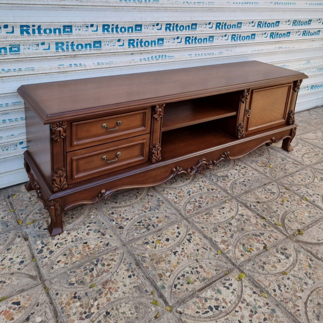 میز تلویزیون دوگل منبتی فروش به صورت نقد و اقساط چوب راش گرجستان ضمانت 36 ماهه بسیار شیک و زیبا مبلمونسرا مدل 218337