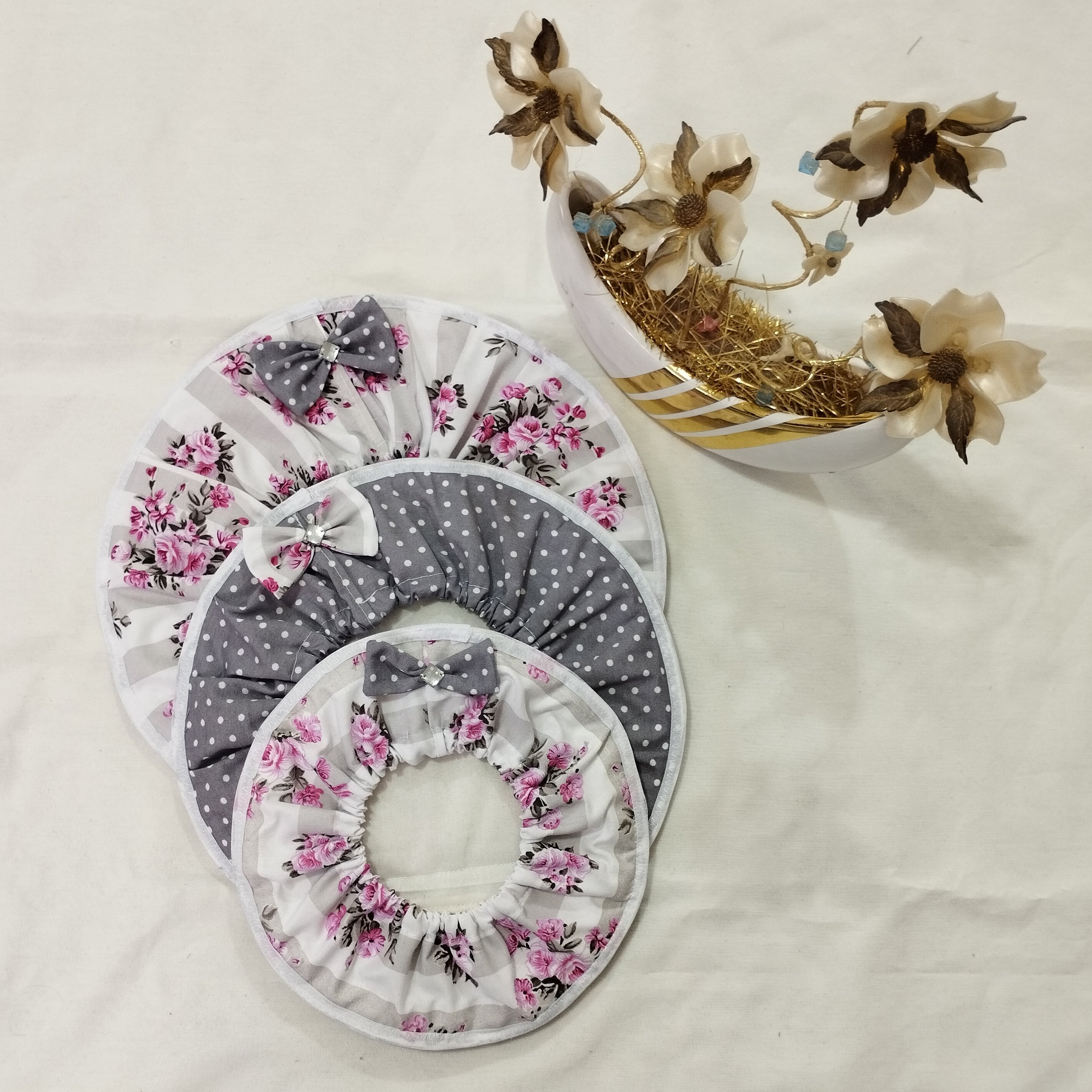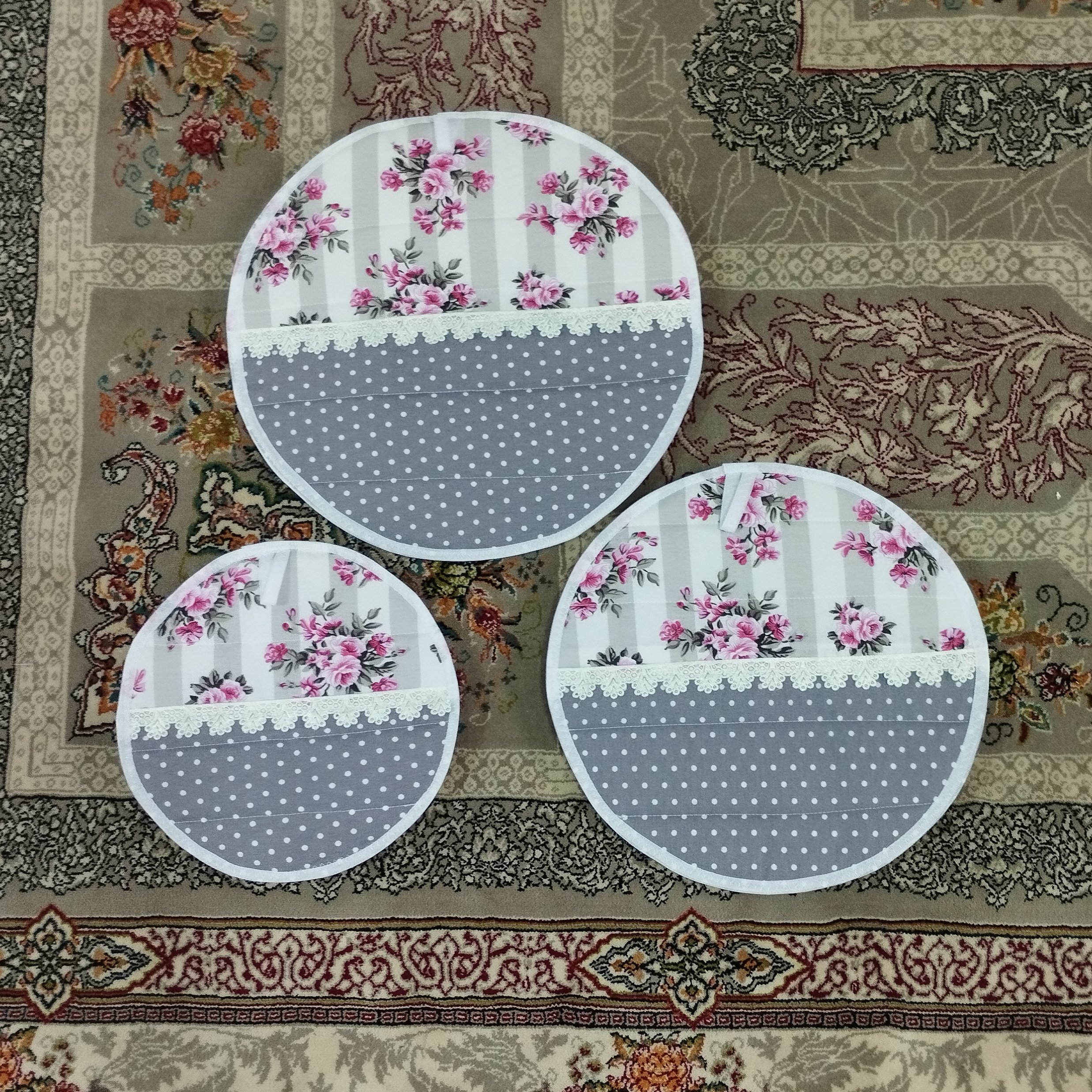 ست دمکنی سه تکه زیبا در ابعادی با قطر 23.....28.....33 که متناسب با قابلمه های مصرفی شما عزیزان می باشد این ست دمکنی متشکل از پارچه تترونی اعلا و لایکو و پارچه متقال است ک به راحتی قابل شستشو میباشد