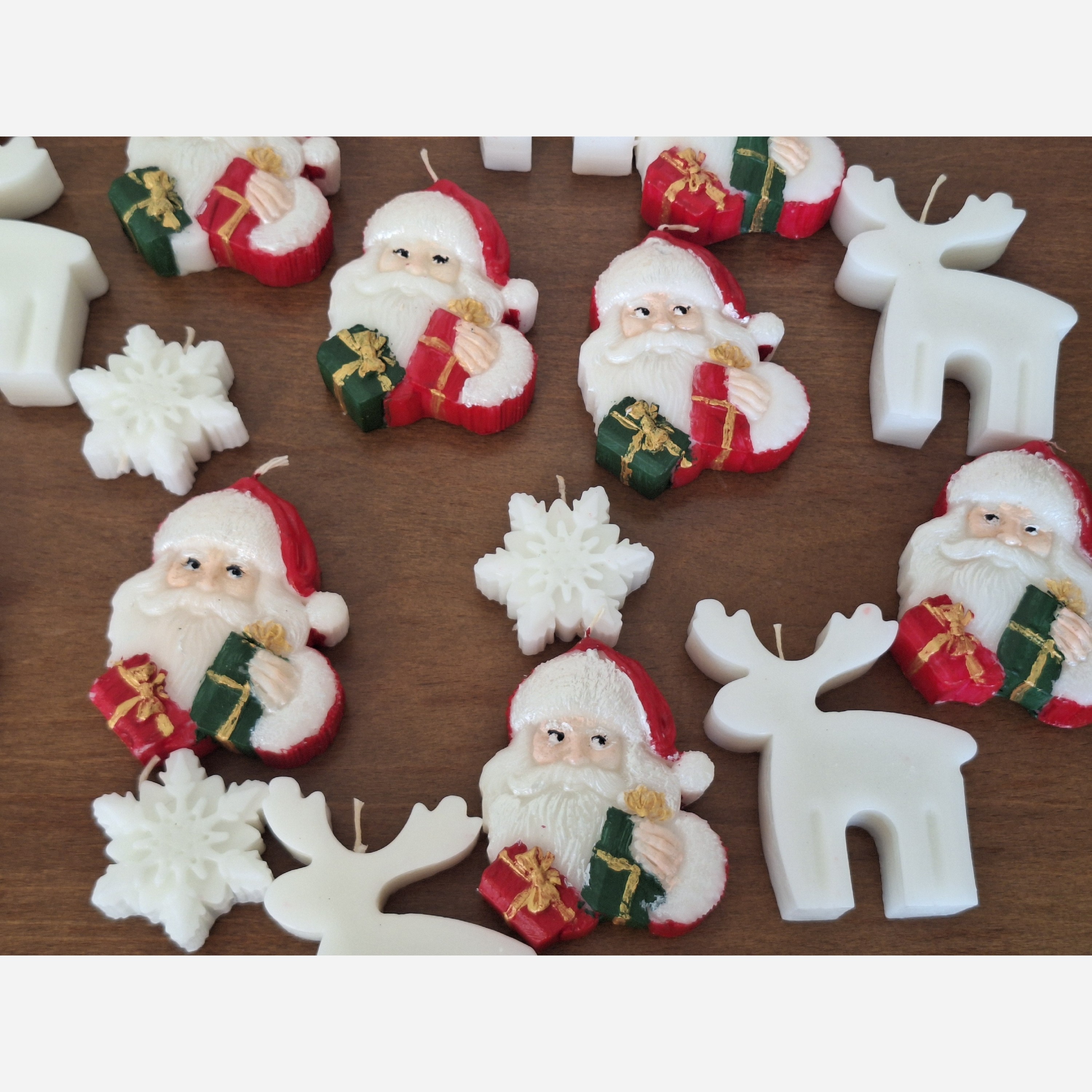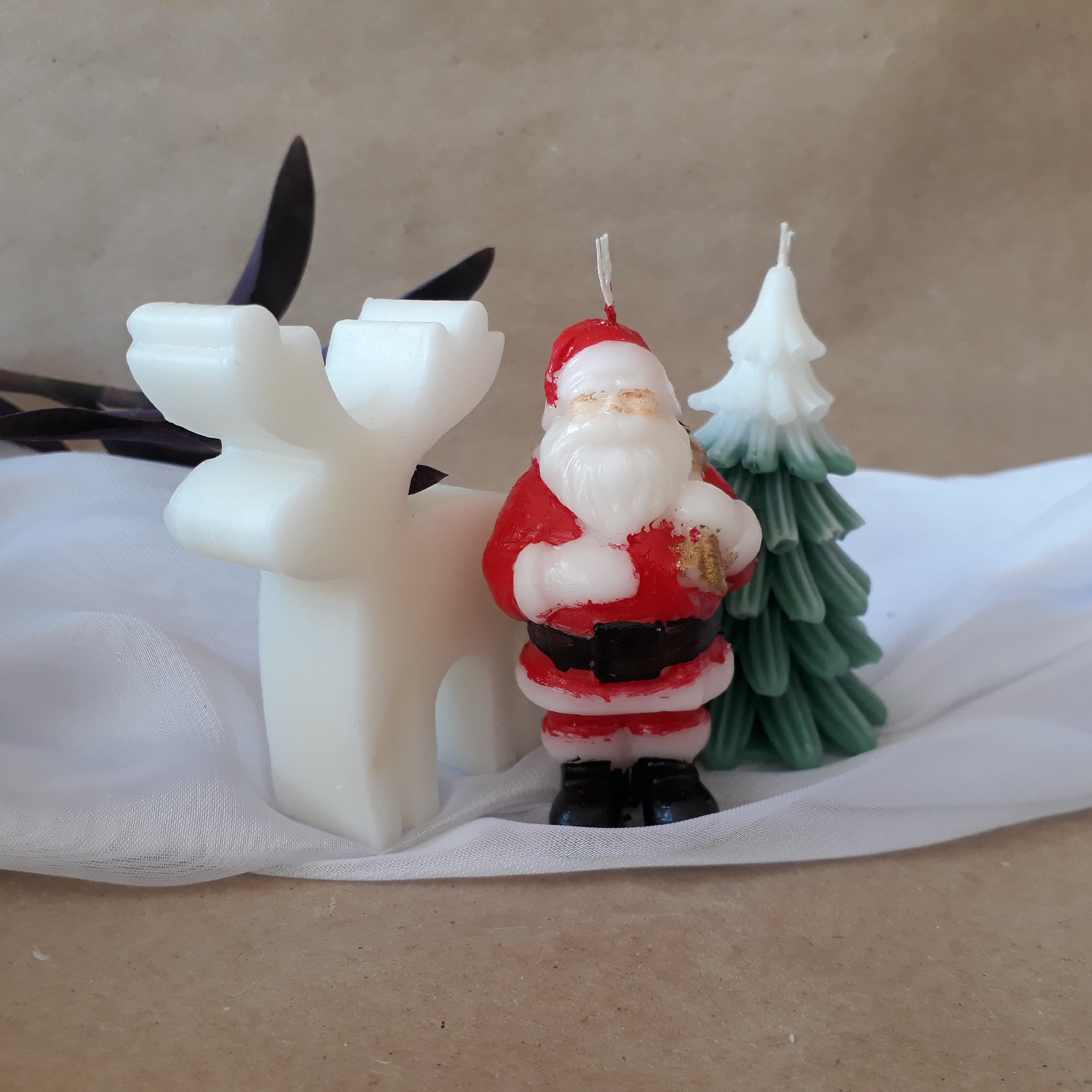 شمع کریسمس شامل بابانویل، کاج و گوزن است که می توانید با هم سفارش دهید و در هر رنگی که مد نظر شماست از پارافین یک درصد درست شده است.