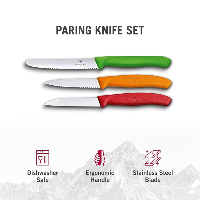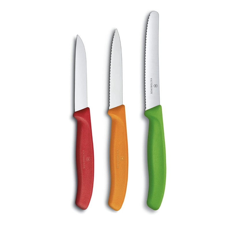 از سال 1884، Victorinox به طرز ماهرانه ای ظروف آشپزخانه طراحی شده برای حرفه ای ها را می سازد. ست چاقوی سه گانه ویکتورینوکس به آشپزخانه شما رنگ می بخشد. این چاقوها میوه ها و سبزیجات را طوری برش می دهند که گویی از کره ساخته شده اند. از لیموترش، سیب زمینی، کدو سبز، انار تا گوجه فرنگی رسیده در آفتاب . این مجموعه از تیغه های مختلف به شما تطبیق پذیری مطلق را هنگام برش می دهد. این ست شامل : چاقوی سبزیجات کلاسیک سوئیسی، برش مستقیم، 8 سانتی متر، (قرمز) / چاقوی سبزیجات کلاسیک سوئیسی، لبه دندانه دار، نوک متوسط، 8 سانتی متر، (نارنجی) / چاقوی گوجه فرنگی و رومیزی کلاسیک سوئیسی، لبه دندانه دار، 11 سانتی متر، (سبز روشن) میباشد .