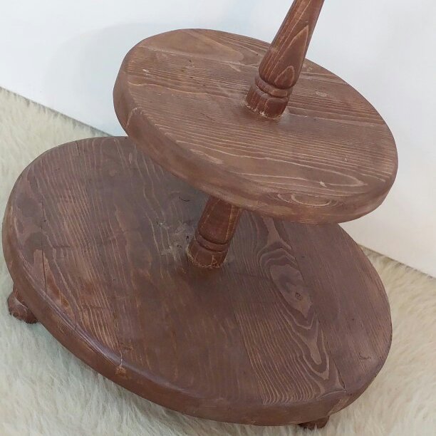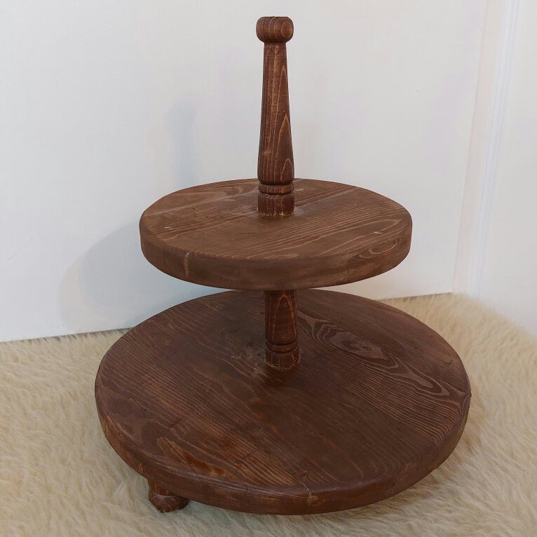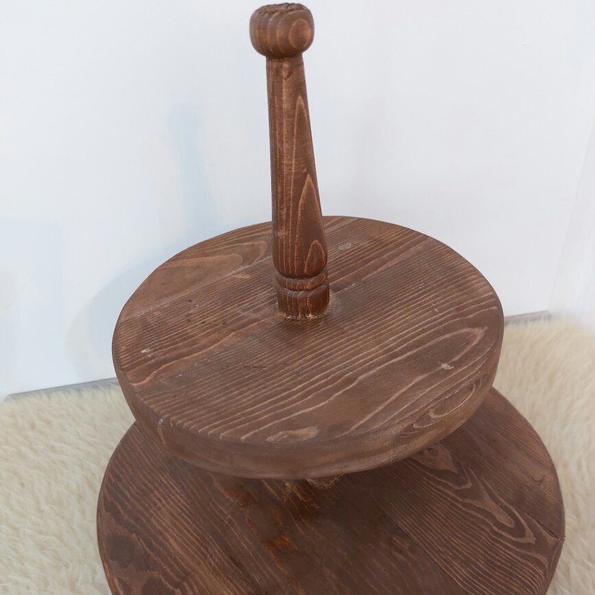 استند دو طبقه چوبی با پایه های زیبا و خراطی شده رنگ چوب ظریف و زیبا جهت پذیرایی و دیزاین
