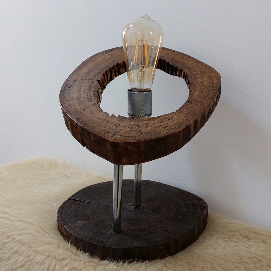 آباژور مدرن تلفیقی از چوب و فلز جنس چوب صنوبر کیفیت عالی رنگ پایه مشکلی رنگ آباژور قهوه ای براق