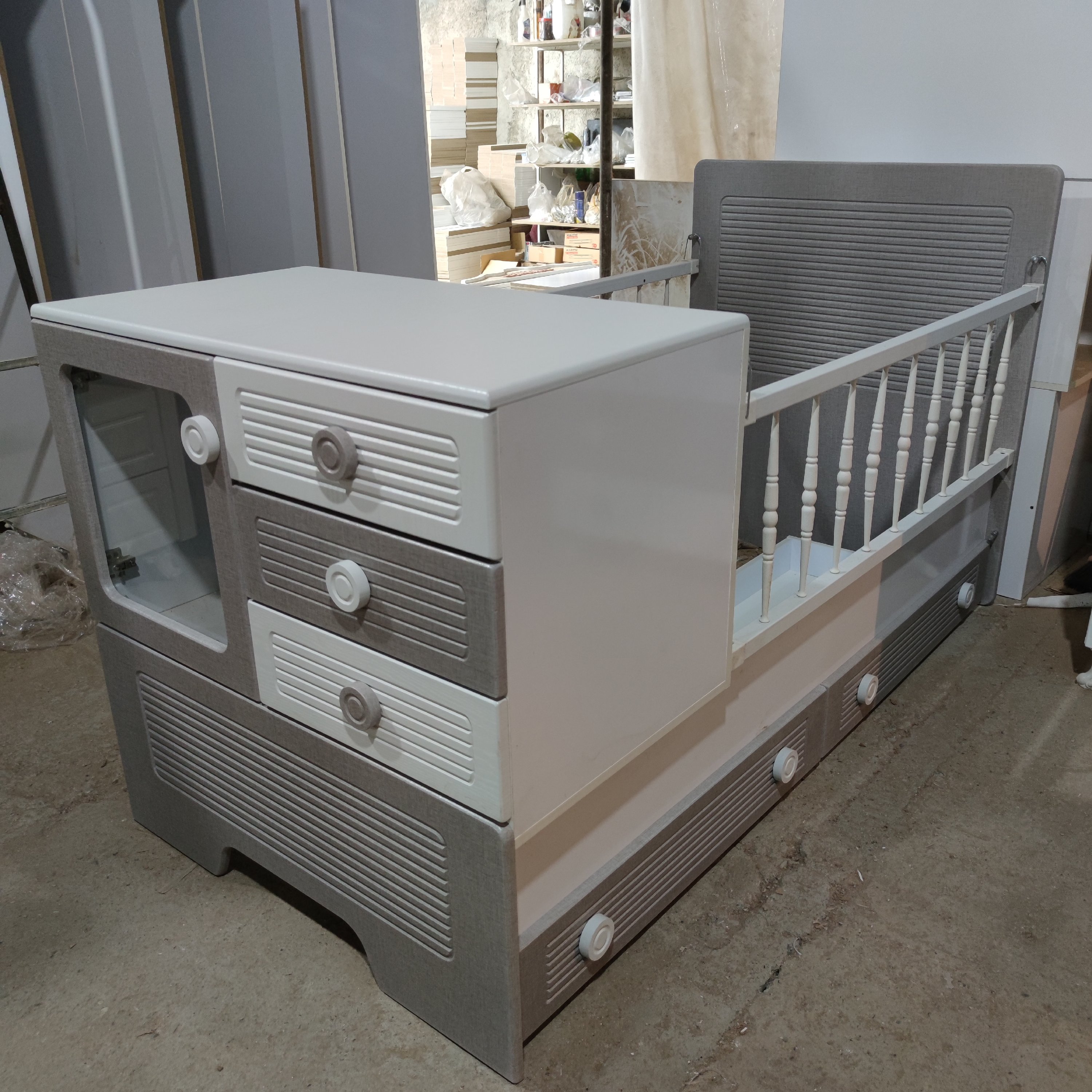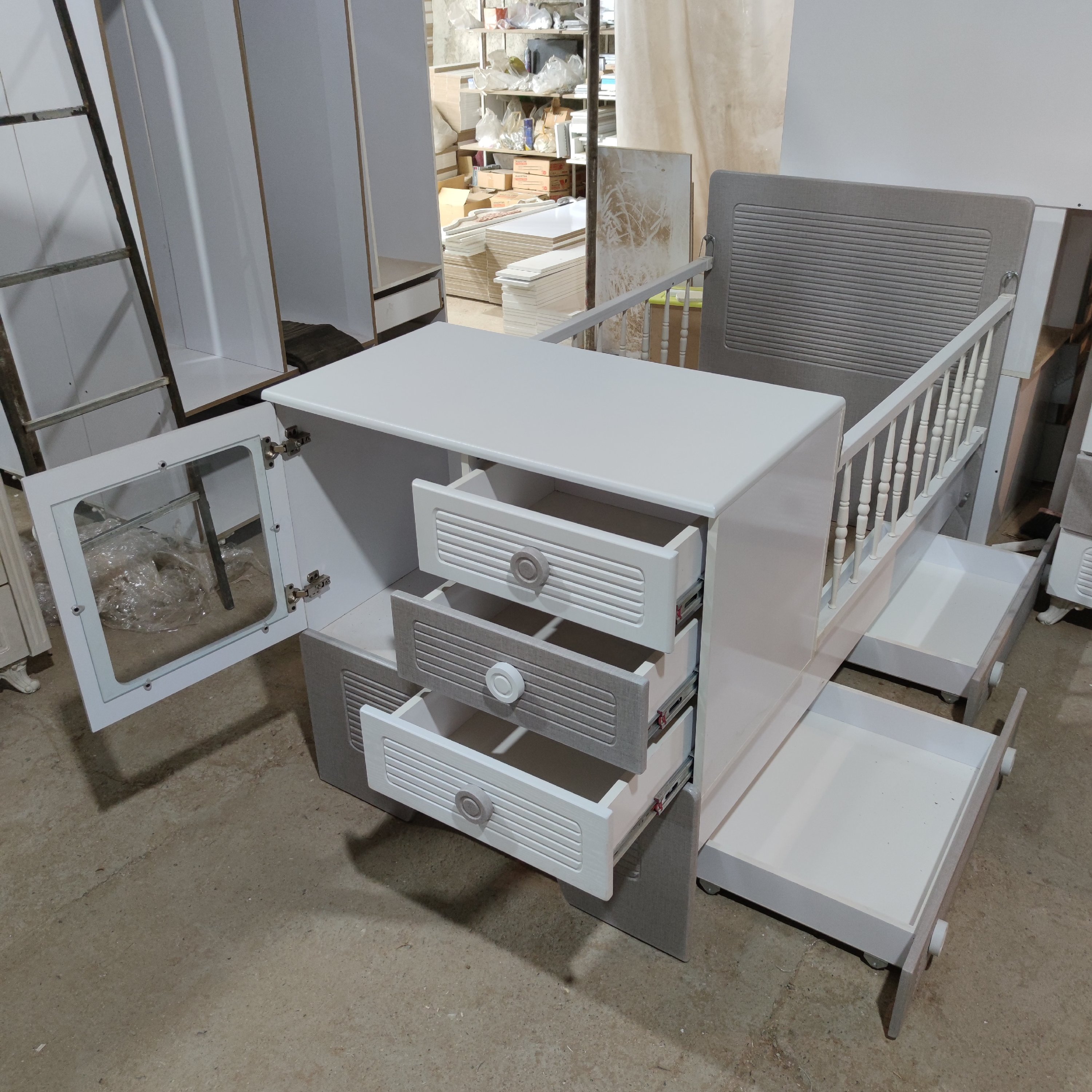سیسمونی تخت و کمد نوزادی تمام ام دی اف با رنگ بندی دلخواه مبلمونسرا مدل 226697