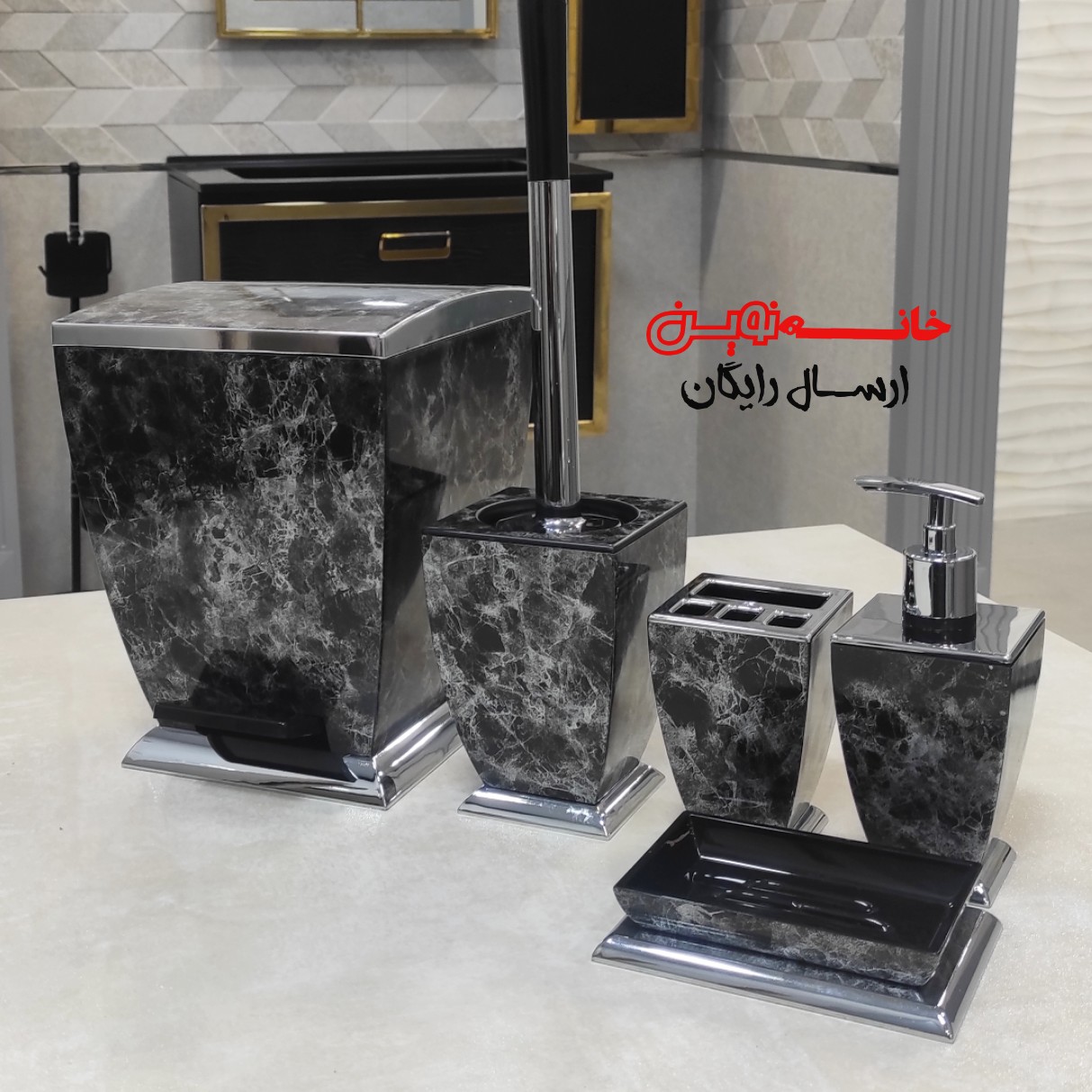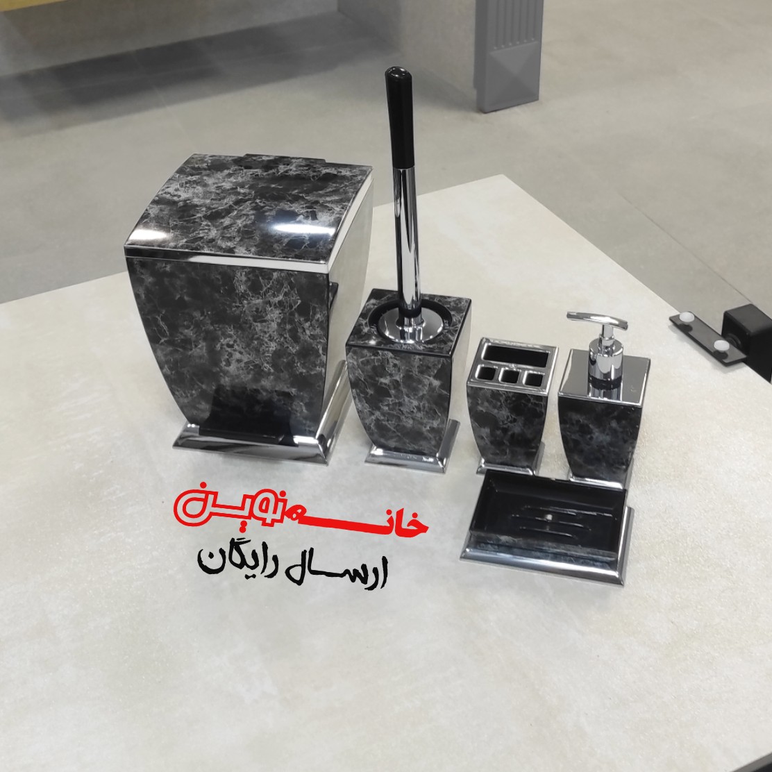 ست سرویس بهداشتیبرند هارمونی مدل آوا رنگ مشکی کروم طرح سنگ مبلمونسرا مدل 266808