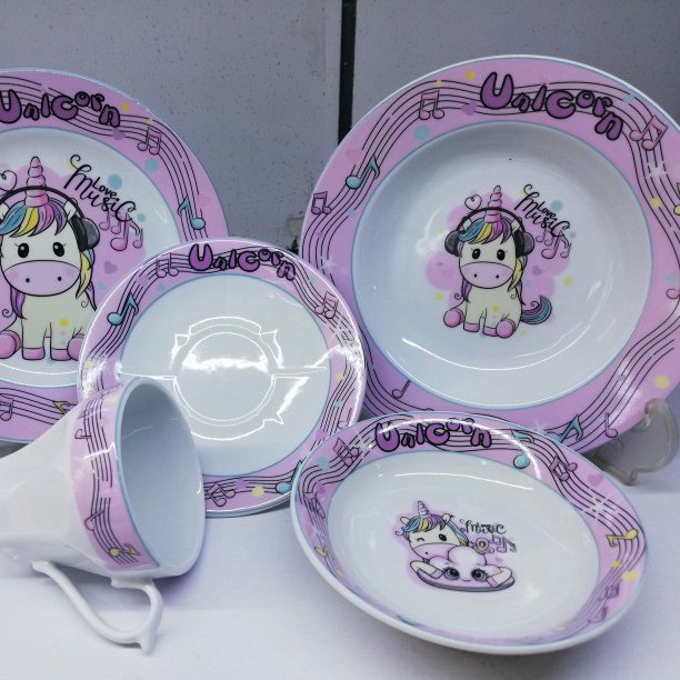 💫سرویس کودک 💫سرویس 5پارچ 💫جنس چینی مقصود 💫قابلیت ماشین ظرفشویی و ماکروفر 💫چند طرح زیبا و خاص