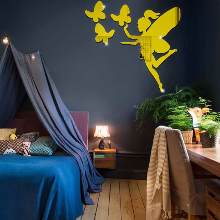 آینه دکوراتیو مولتی استایل طرح پری ،ابعاد کلی طرح 50 سانت، در دو رنگ طلایی و نقره ای مبلمونسرا مدل 262739