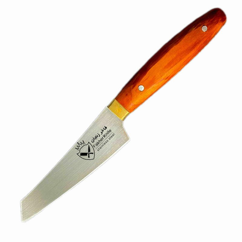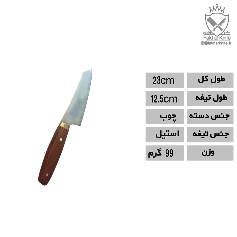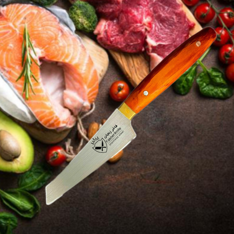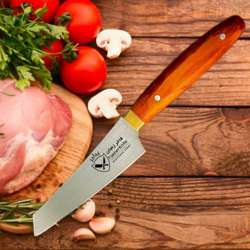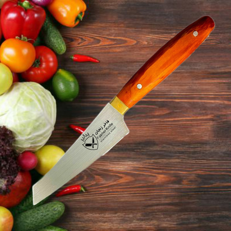 این نوع چاقو که به چاقوی دم دستی شهرت دارد کاملا تیز و سبک می باشد و مناسب سرآشپزها و آشپزی در منزل می باشد و مناسب انواع کارهای عادی و معمولی در آشپزخانه اعم از پوست کندن سیب زمینی و پیاز و... می باشد جنس تیغه این محصول از استیل می باشد که سیاه نمی شودوبه ل سمباده کاری وسنگ کاری مناسب به راحتی با چاقو تیز کن وسنگ ومستقل خانگی به راحتی تیز میشودو جنس دسته این محصول از چوب مرغوب و با کیفیت ترمو وود می باشدکه در برابر آب کیفیت ثابتی دارد