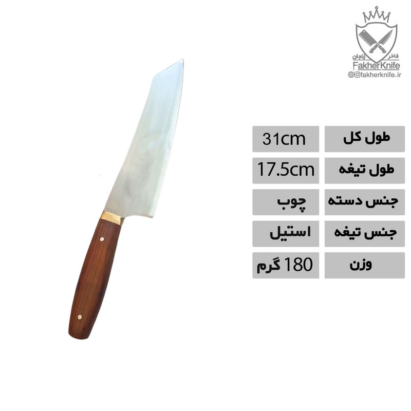 این نوع چاقو که به چاقوی راسته ژاپنی شهرت دارد کاملا تیز و سبک می باشد و مناسب سرآشپزها و آشپزی در طبیعت و انواع کار های تخته کاری می باشد و در برش و خرد کردن انواع گوشت و تکه تکه کردن مرغ و... مهارت دارد جنس تیغه این محصول از استیل می باشدکه سیاه نمی شودو تیزی ثابتی دارد و جنس دسته این محصول از چوب مرغوب و با کیفیت ترمو وود می باشد که در برابر آب کیفیت ثابتی دارد