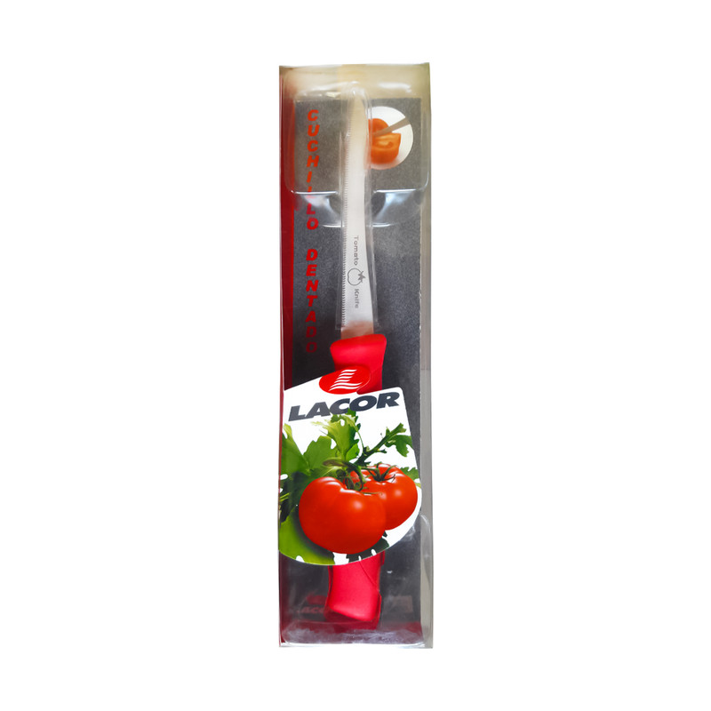 چاقوی لاکور مدل CUCHILLO از جمله محصولات پرکاربرد و با کیفیت برند اسپانیایی لاکور می باشد که طرحی کاربردی و کلاسیک داشته و می تواند ابزاری موثر و کارامد در آشپزخانه شما باشد.این چاقو از انواع چاقوی ملقب به لیزری است که به ل استقبال فوق العاده ای که از آن شده است دارای نمونه های متفرقه و تقلبی زیادی بوده و بهتر است به هنگام خرید و دریافت آن به این موضوع توجه شود. تیغه این چاقو حدود 11 سانتی متر طول داشته و فرم آن شبیه چاقو های فیله کنی است اما دارای دندانه های بسیار ریز، ظریف و به شکل غیر قابل تصوری برنده می باشد. جنس تیغه از استیل ضد زنگ بوده و به ل فرمی باریک و بلندی که دارد مناسب ایجاد برش های بسیار نازک و دقیق روی انواع سبزیجات و سیفی جات مثل گوجه و خیار و حتی فیله کردن ماهی و یا پوست گیری ظریف و با دقت می باشد. دسته این چاقو از جنس پلی پروپیلن و دارای بافتی زبر است که جلوی تعرق و سرخوردن را می گیرد. این چاقو طولی معادل 22 سانتی متر داشته و بسیار سبک وزن می باشد و می تواند دستیار همیشگی شما در آشپزخانه شود و با ماشین ظرفشویی نیز قابل شستشو می باشد.