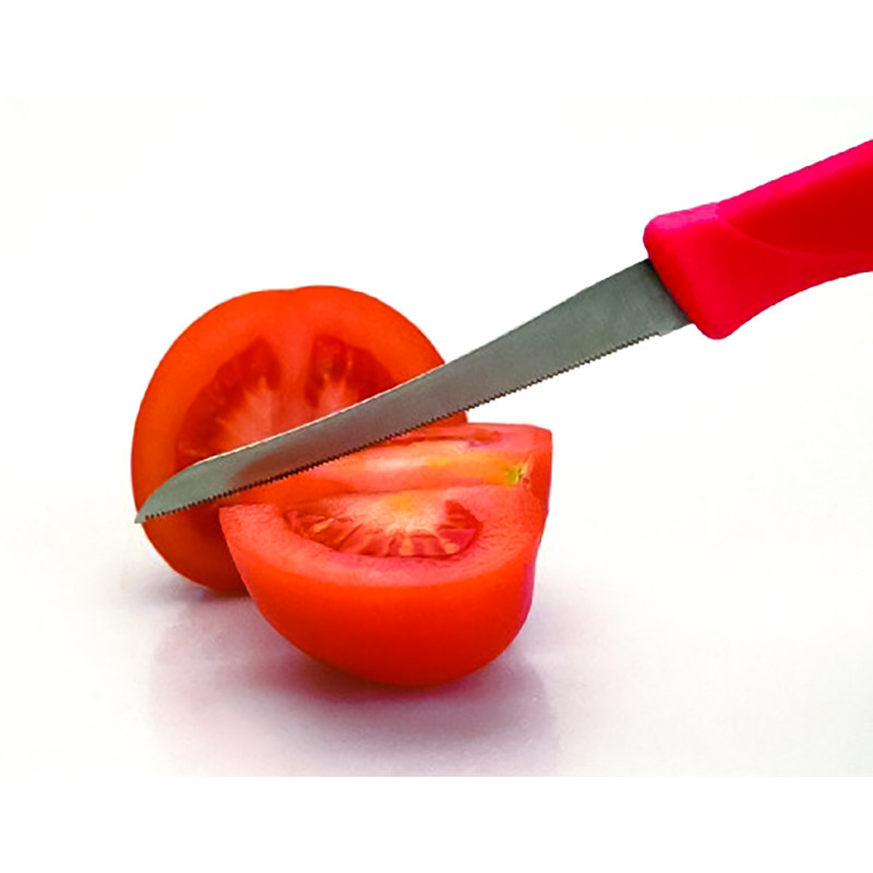 طول کل ۲۲ سانتی متر طول تیغه ۱۱ سانتیمتر جنس تیغه از استیل ضد زنگ بسیار مقاوم تیغه دارای دندانه های ریز،ظریف و بسیار برنده مناسب ایجاد برش های ظریف و دقیق روی انواع سبزی،سیفی جات،مثل ماهی و پوست گیری دسته از جنس پلی پروپیلن دارای بافت زبر ساخت کشور اسپانیا