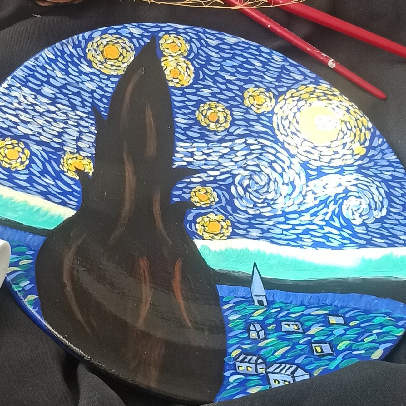 دیوارکوب سفالی ۲۰سانتی طرح شب پرستاره اثر ونگوک ،فیکس شده و ضد آب می باشد.