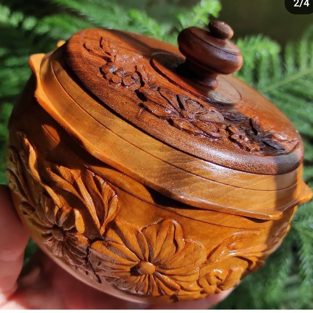 اگر برای سرو انواع شکلاتها و آبنباتها نیازمند ظرف پذیرایی چوبی زیبایی هستید،این ظرف زیبا تقدیم به شما. 🔹ویژگیهای شکلات خوری چوبی: 🔸دوطرف ظرف و روی درب منبت شده 🔸پوششی ضد آب داره 🔸پوشش درون شکلات خوری روغن گیاهیست مناسب سرو انواع شکلاتها، پشمکها و کندی و آبنبات ساخته شده با چوب گردوی دو رنگ زیبا طراحی خاص و منحصربهفرد