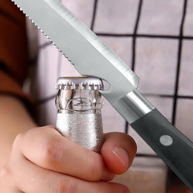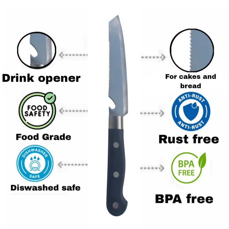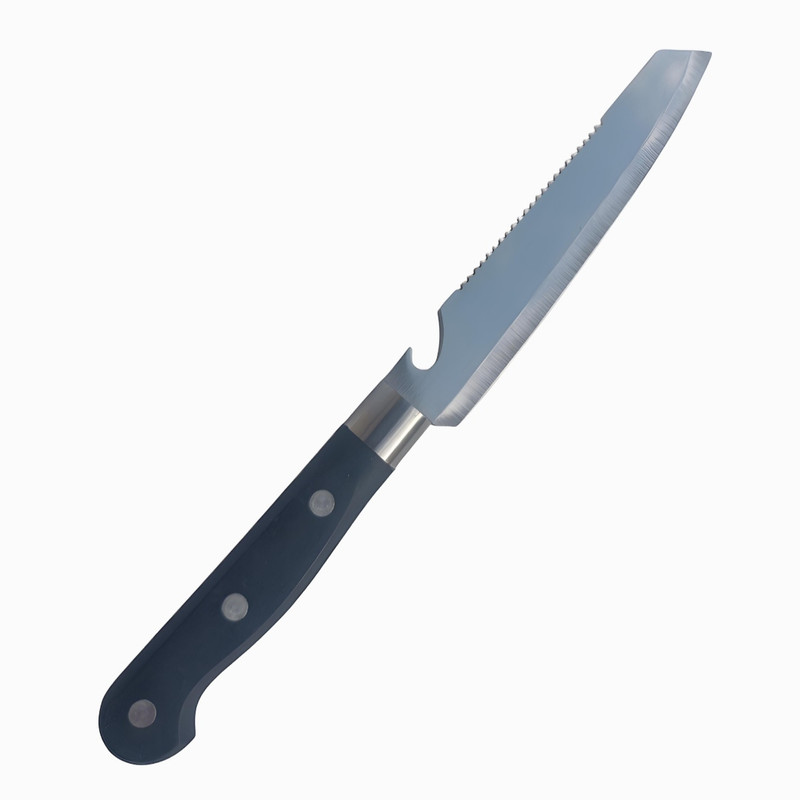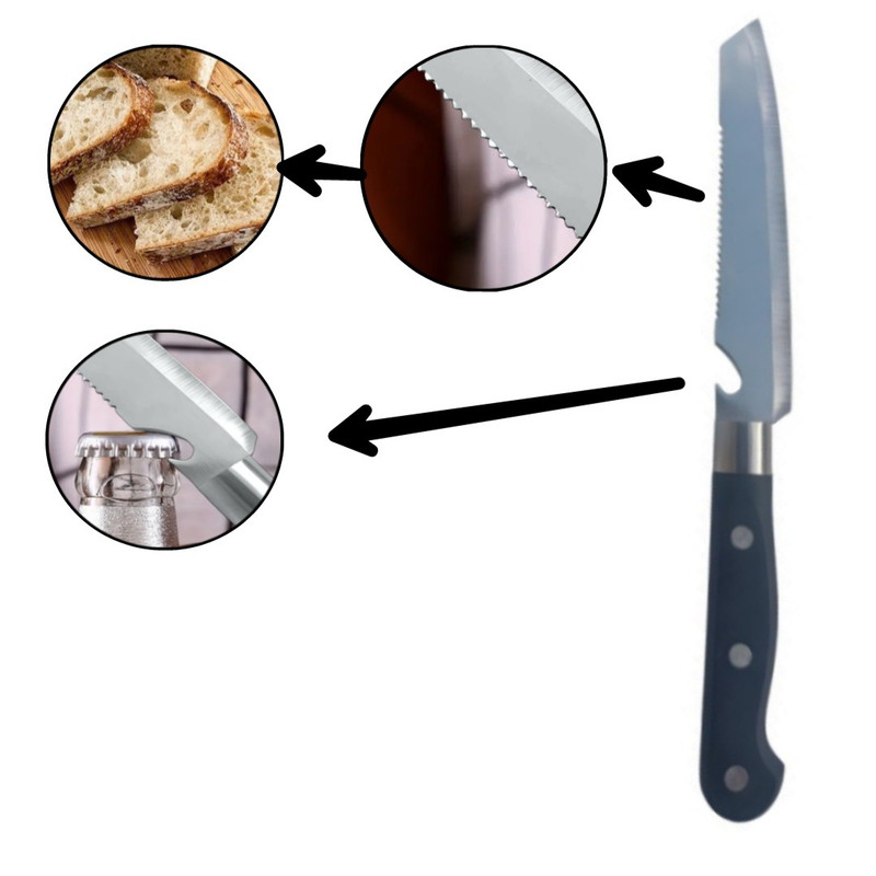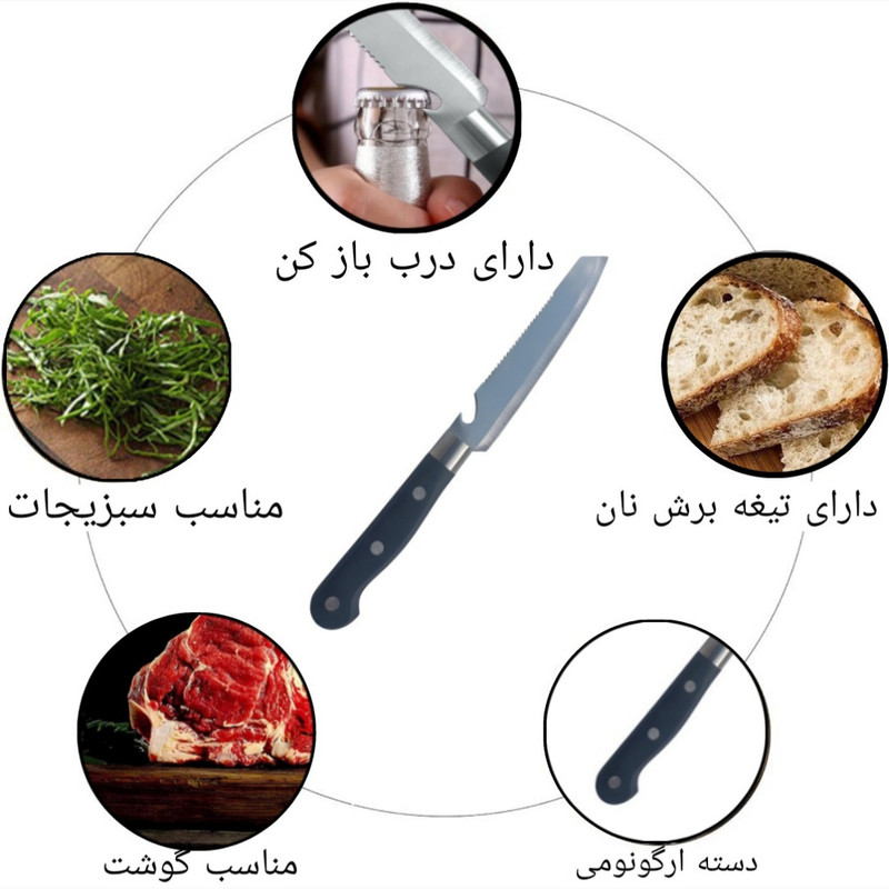 چاقو سهکاره یک ابزار چندمنظوره است که برای برش نان، میوه و گوشت طراحی شده و همچنین به عنوان درب بازکن نوشیدنی نیز عمل میکند. این چاقو دارای ویژگیهای زیر است: 1. تیغه دندانهدار: تیغه برش نان دندانهدار است که به راحتی میتواند نان را بدون له کردن آن برش دهد. این ویژگی به شما امکان میدهد تا برشی از نان داشته باشید. 2. تیغه صاف: برای برش میوه و گوشت، چاقو دارای تیغهای صاف و تیز است که به راحتی میتواند بافتهای نرم و سخت را برش دهد. این تیغه از فولاد ساخته شده که دوام و طول عمر بالایی دارد. 3. درب بازکن: در انتهای تیغه چاقو یک قسمت برای باز کردن درب نوشیدنی (مانند بطریهای نوشابه) وجود دارد. این ویژگی باعث میشود که چاقو به یک ابزار همهکاره در مهمانیها و پیکنیکها تبدیل شود. 4. دسته نومیک: دسته چاقو باید راحت و نومیک باشد تا در حین استفاده احساس راحتی کنید و کنترل بهتری بر روی چاقو داشته باشید. مناسب : چاقو سهکاره که مناسب برش نان، میوه و گوشت و همچنین به عنوان درب بازکن نوشیدنی عمل میکند، به ل ویژگیهای خاصش، گزینهای عالی برای استفاده در محل کار، کمپ کوهنوردی و خوابگاه نیز به شمار میآید. این چاقو با طراحی چندمنظورهاش میتواند در شرایط مختلف به کار بیاید: 1. محل کار: در محیطهای اداری، این چاقو میتواند برای برش نان و میوه در زمانهای استراحت یا میانوعدهها استفاده شود. همچنین، درب بازکن آن میتواند در مواقعی که نیاز به باز کردن نوشیدنی دارید، بسیار مفید باشد. 2. کمپ کوهنوردی: چاقو سهکاره به ل سبکی و قابلیت حمل آسان، انتخابی عالی برای کوهنوردان و کمپکنندگان است. این چاقو میتواند در برش مواد غذایی مانند نان، میوه و گوشت برای وعدههای غذایی در طبیعت و همچنین باز کردن نوشیدنیها در کنار آتش بسیار کاربردی باشد. 3. خوابگاه: برای دانشجویانی که در خوابگاه زندگی میکنند، داشتن یک چاقو چندمنظوره میتواند بسیار مفید باشد. این چاقو میتواند برای تهیه غذاهای ساده، برش میوهها و باز کردن نوشیدنیها در ملاقاتهای دوستانه یا جشنها استفاده شود. به طور کلی، چاقو سهکاره به ل کاربردی بودن و طراحی مناسبش، یک همراه عالی برای هر نوع فع در محل کار، کمپ کوهنوردی و خوابگاه است.