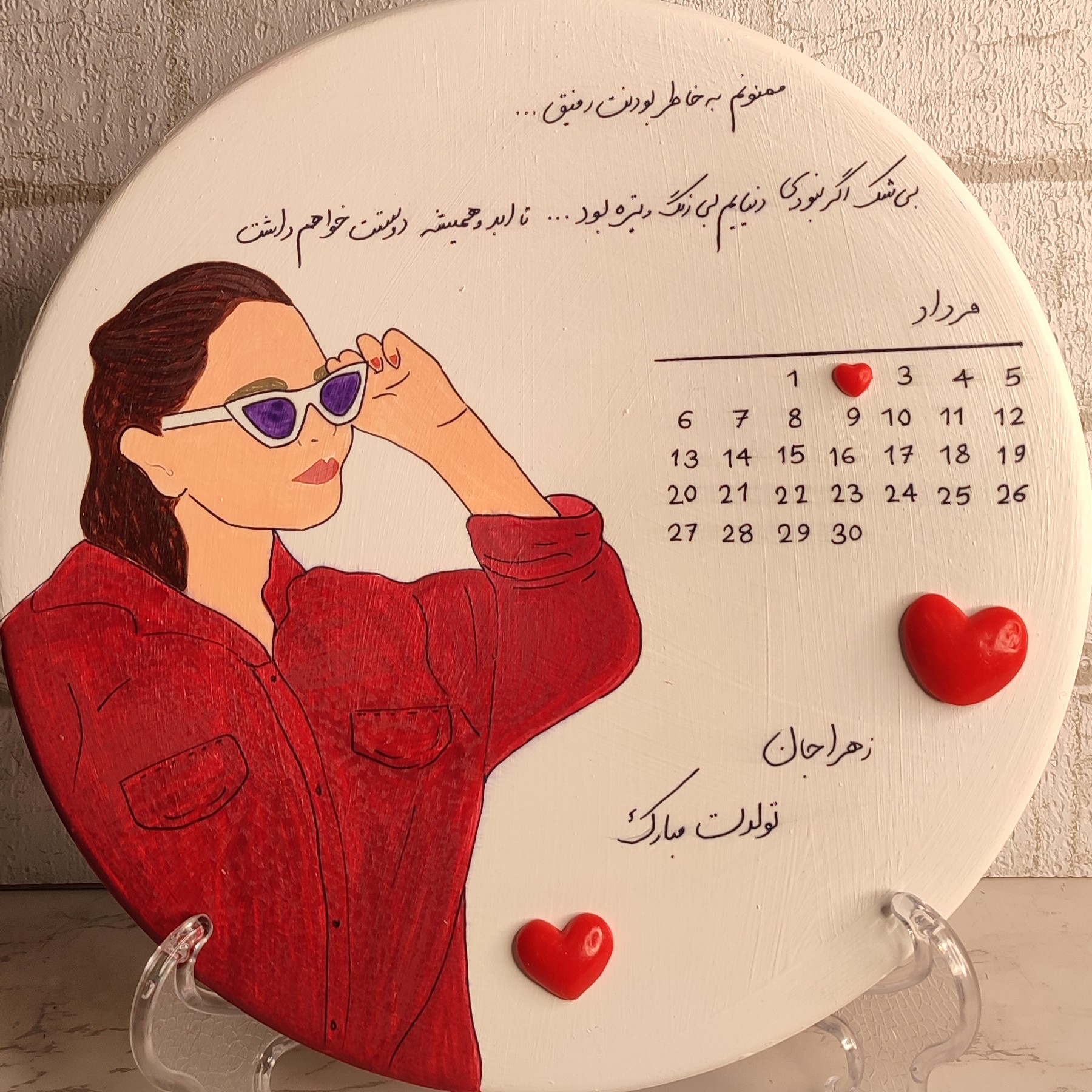 کادو تولد دخترونه دیوارکوب مینیمال چهره 20 سانتی و تقویم با بسته بندی رایگان هدیه مبلمونسرا مدل 258476