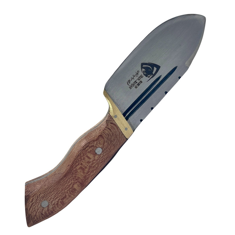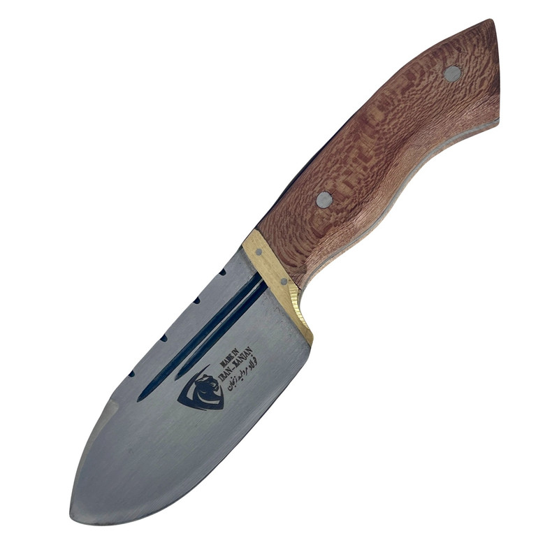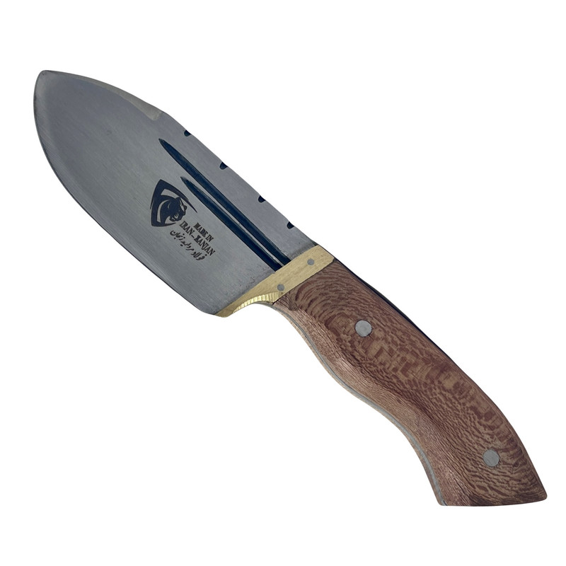 طول کلی 20.5 سانتیمتر؛طول دسته 11 سانتیمتر ؛طول تیغه 9.5 سانتیمتر ؛عرض تیغه 4.5 سانتیمتر ؛ضخامت تیغه 3 میلیمتر جنس دسته از چوب جنگلی و جنس تیغه از فولاد و همچنین دارای غلاف نیز می باشد.