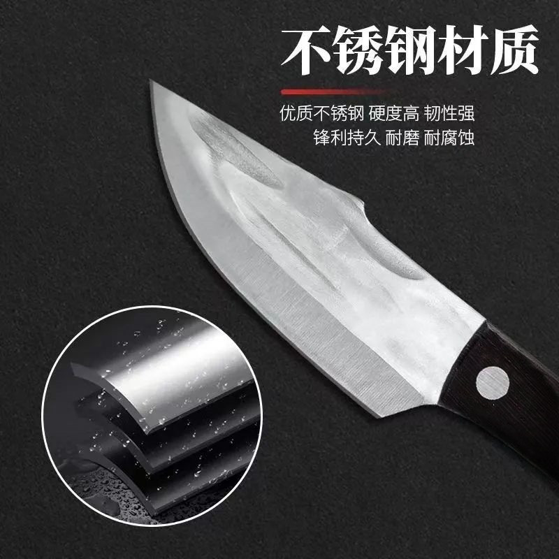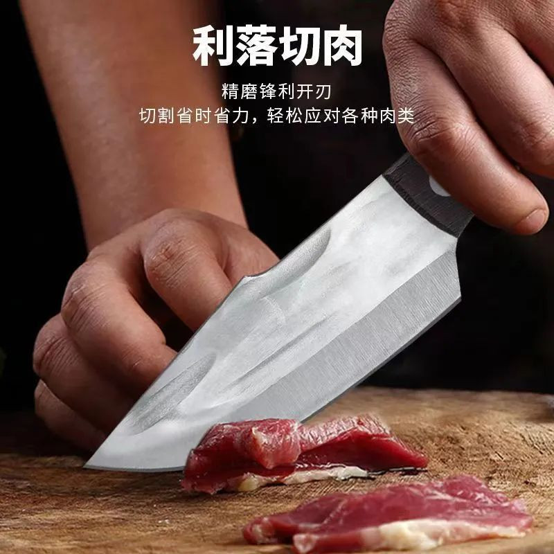 چاقوی آشپزی دستی از جنس - های کربن استیل مناسب برای آشپزی و قصابی است که به منظور برش گوشت و مرغ، خرد کردن و بی استخوان کردن آن بسیار کاربردی و خوش دست است. از نظر کاربری دارای کیفیت بالای ساخت است، تیزی و برندگی فوق العاده دارد و سبک و بسیار خوش دست طراحی شده است. وزن سبک این چاقو باعث محبوبیت بیشتر آن نزد کاربران نه تنها در خانه و آشپزخانه، که برای آشپزی در طبیعت و یا در سفر و کمپ ها شده است. این چاقو 21 سانتیمتر طول دارد که با طول تیغه 11 سانتیمتر و دسته 10 سانتیمتری، که برای ایجاد تعادل وزنی و کنترل بهتر موقع کار با چاقو بسیاراهمیت دارد، یک همراه نومیک و کارا برای هر آشپز حرفه ای خواهد بود. تنها یک اشاره برای بریدن گوشت یا مرغ یا هر نوع میوه و سبزی کافیست! چون این چاقو بسیار تیز و کار کردن با آن بسیار راحت است. هنگام استفاده از آن کاملا مراقب دستان خود باشید و از دستکش مخصوص (زره ای) استفاده کنید! کارایی این چاقوی فوق العاده تیز در مواقع ضروری بیشتر مشخص می گردد و حمل آسان این چاقوی کاربردی در کوله کمپینگ یا در جعبه ابزار ماشین از مزایای آن است. قیمت این چاقوی فوق العاده نسبت به کیفیت آن بسیار مناسب است و به زودی جزو ابزار لاینفک آشپزی شما در خانه و در سفر خواهد شد. در کنار تمام این مزایا، زیبایی و طراحی این چاقو، با کیفیت و کاربرد فوق العاده آن برابری می کند. برای نگهداری و مراقبت از آن، تنها کاری که لازم است انجام دهید این است که بعد از هر بار استفاده، چاقو را شسته و با یک دستمال پاک و خشک کنید و برای یک برش عالی در دفعات بعدی داخل غلاف قرار دهید، چون این چاقو به خاطر جنس فولاد High Carbon Steel برای مدت زیادی تیز باقی می ماند و تا مدت ها نیاز به تیز کردن مجدد آن ندارید. تیغه این چاقو منحصرا برای برش گوشت، خرد کردن و بی خس کردن است، پس برای ضربه زدن به استخوان از ساطور استفاده کنید و با تیغه این چاقو به سنگ و فلز و اشیای سخت ضربه نزنید.